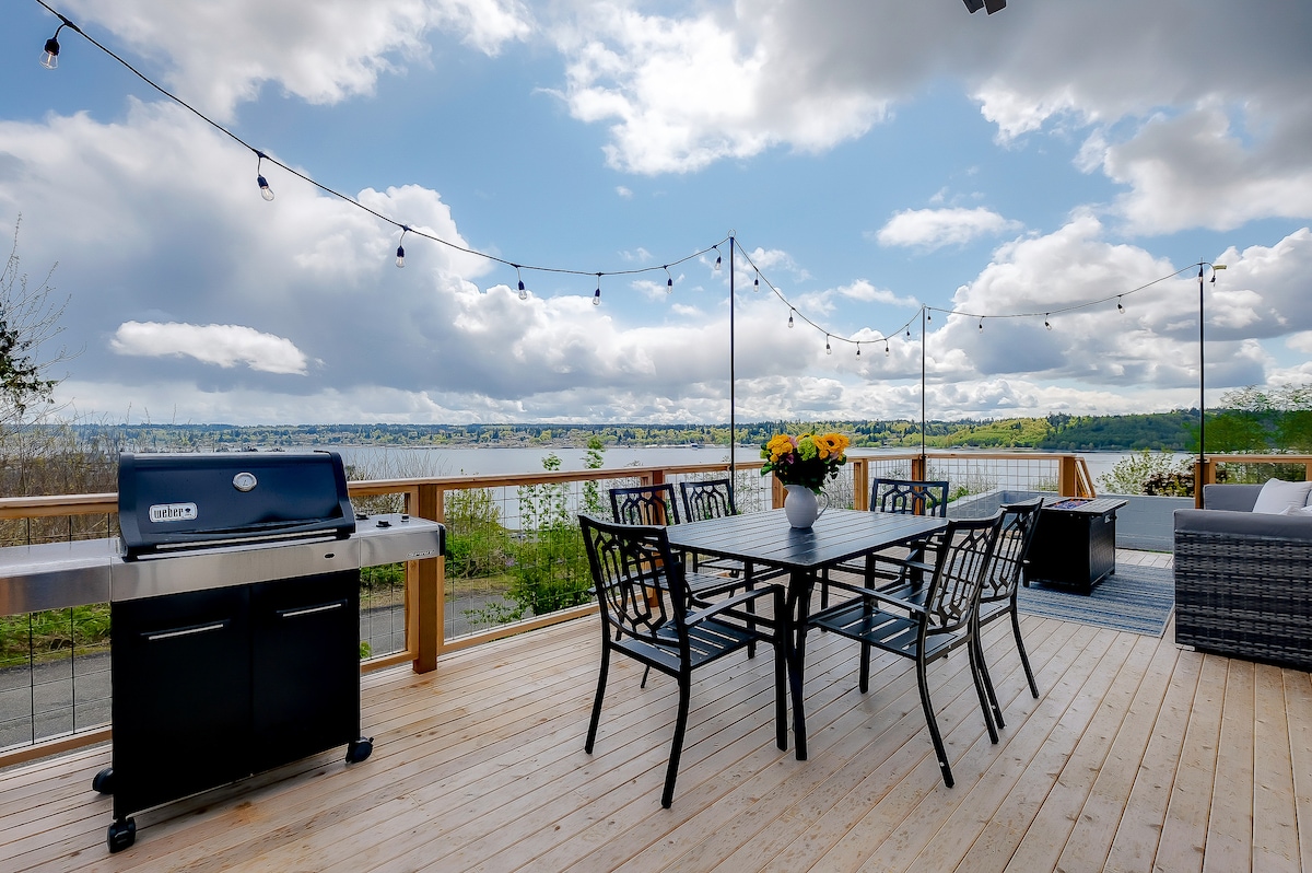 Remodeled home with spectacular views of the Olympic Mountains & Salish Sea. You’ll enjoy gorgeous decks, outdoor sauna, and lavender garden. Terrific central location just 9-minutes to Seattle Ferry, 2 minutes to Lions Park with boat launch. Near artsy browsing charm of Manette, and all the modern shopping convenience of Silverdale. Great jumping off point for exploring the Olympic Peninsula: National Parks, Hood Canal, mountains, beaches, with remarkable hiking, boating, and Pacific NW food.