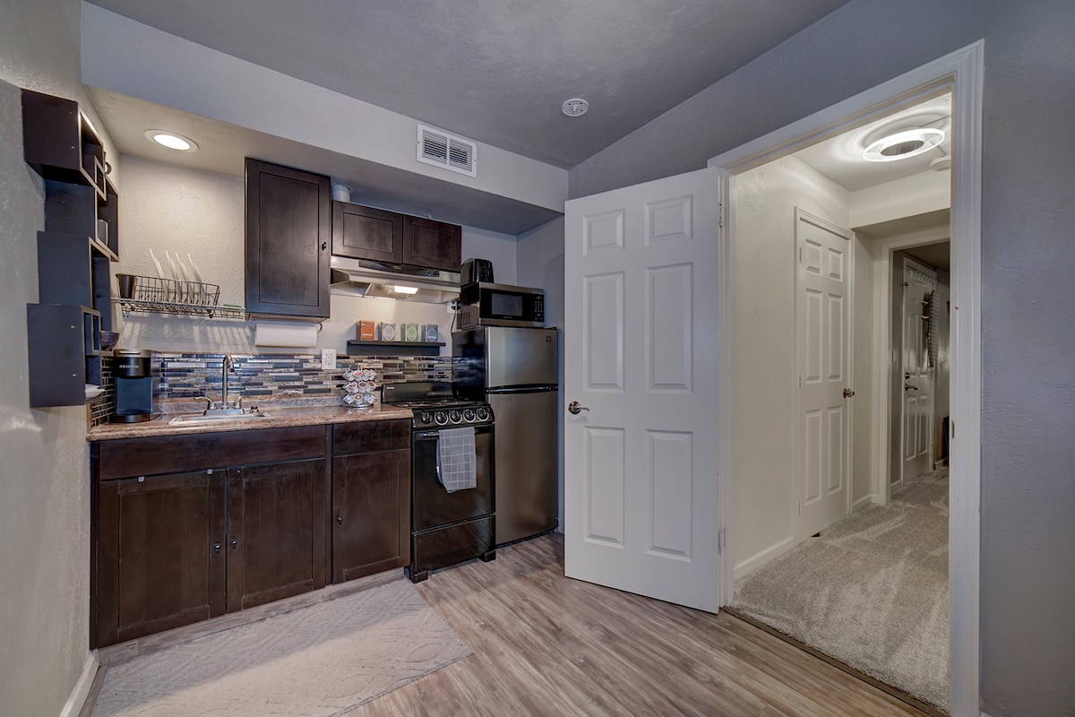 The Little Guest House is a vintage 100 year old home nestled in a quiet neighborhood with all the modern conveniences to make your stay comfortable and relaxing. The living areas are inviting both inside and out. There is a cozy living and dining room, full kitchen with a charming breakfast nook, and a laundry room for your use. The bathroom is small with a shower (no tub).