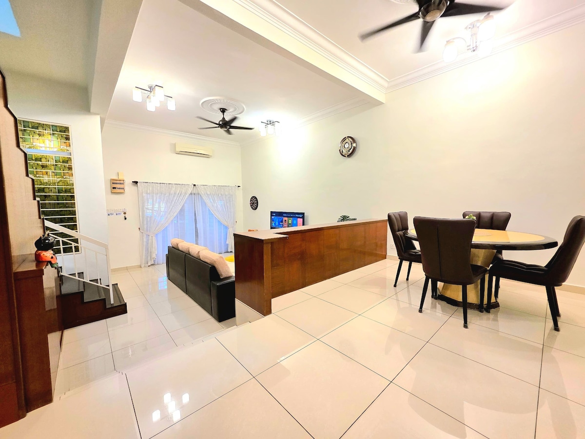 📍 Setia Indah, Setia Alam – dvonadstropni dom ✔️ 5 minut do nakupovalnega središča Setia City Mall in kongresnega centra Setia City Convention Centre ✔️ Udobna dnevna soba s projektorjem za ogled filmov ✔️ Klimatska naprava in ventilatorji v vsaki sobi ✔️ Hitra povezava Wi-Fi s hitrostjo 300 Mb/s za delo in zabavo ✔️ Idealno za družine, skupine in poslovna potovanja