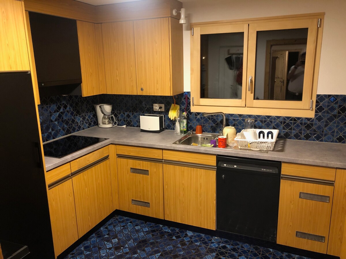 The cosy apartment with two bedrooms is very centrally located (150m to the train station and the gondola, 200m to the Coop) and offers a beautiful view of the Gotschnagrat. The apartment has 60sqm, a south-west facing balcony and an underground parking space. There is a very nice swimming pool in the house (free of charge, closed 13.4.-26.6. and 26.10.-11.12.); the sauna can be used for 10CHF/2h. There is also a ski cellar, a table tennis room and a laundry room.