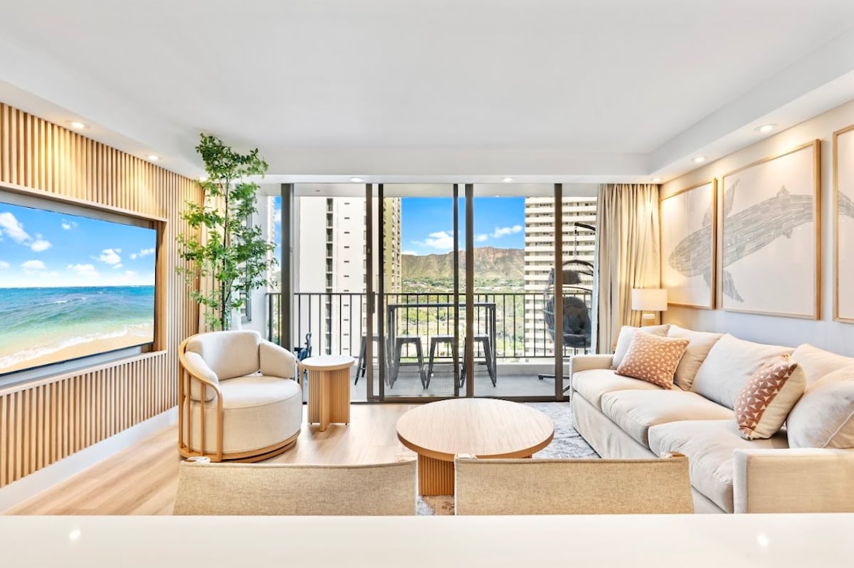 Enjoy an Aloha Spring with: • Complimentary Early Check-in and Late Check-out* • Complimentary Parking included ($50-75/day benefit) * Based on availability. The Honu Suite is a serene, design-forward retreat in the heart of Waikiki - just one block from the beach. Enjoy panoramic Diamond Head and ocean views from the 33rd floor, curated amenities, and five-star touches throughout. Rooted in Hawaiian heritage, it's perfect for discerning couples seeking comfort, style, and a sense of escape.