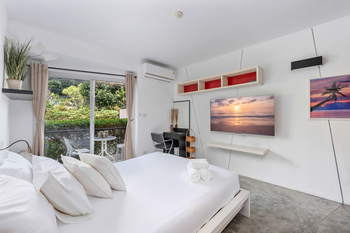 Naše veliko stanovanje (62 m2) je opremljeno po zelo visokih standardih. Vključuje popolnoma opremljeno evropsko kuhinjo, veliko kopalnico s prho in veliko zakonsko posteljo. Voda in Elec sta vključena. Ima svoj hitri Wi-Fi, pametno televizijo in mizo s 4 stoli, zaradi česar je idealen za počitniška bivanja in digitalne nomade. Kompleks ima 2 bazena, telovadnico, savno, košarkarsko in teniško igrišče. Prečkajte cesto in že ste na plaži. Do barov, restavracij, klubov na plaži in masažnih centrov se lahko sprehodite.