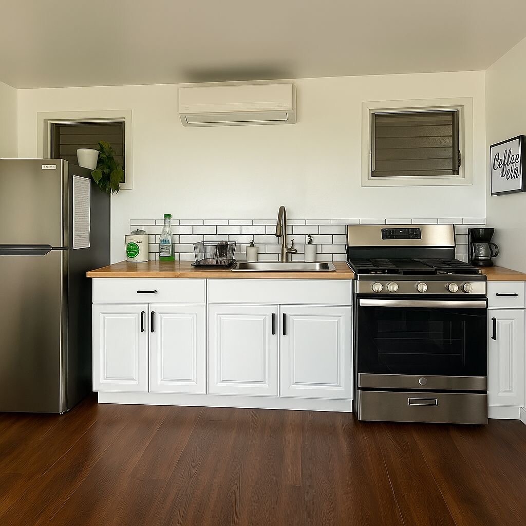 Conveniently located just 5 minutes from the airport and 15 minutes to downtown Kailua-Kona, this inviting space offers comfort and ease. Enjoy vaulted ceilings, a cozy lanai for morning coffee, a spacious bathroom with double vanity, and a well-equipped kitchenette. Stay cool with powerful A/C or relax with the tropical breeze. Reliable WiFi and a large Roku TV make it easy to unwind. Automated check-in and flexible booking ensure a smooth, stress-free stay.