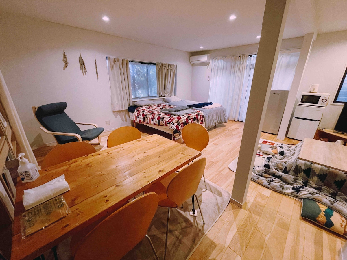 Samostojna dvosobna hiša v velikosti 53 m² z majhnim vrtom v Kokubunji. Idealno za družine, ki se vračajo na Japonsko za daljša bivanja. Kuhinja z jedilnico in dve ločeni sobi, primerno za največ 5 gostov. Nahaja se na mirnem območju z neposrednim dostopom do linije JR Chuo, ki pelje do Shinjukuja. Trgovine in supermarketi v bližini. Čisto in udobno prenočišče za dolgotrajno bivanje. Kuhinja, pralni stroj in Wi-Fi so vključeni. Na voljo so popusti za dolgotrajna bivanja.