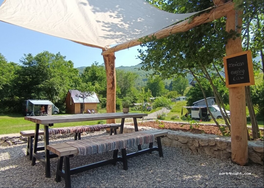 Dobrodošli v URSACAMP. Kaj je to? To je kamp, glamping, kamp za počitniške prikolice, pub na prostem z odlično lokalno in mednarodno kuhinjo, kmetija sivke - nahaja se na čudovitem odmaknjenem kraju v gorah s stalnim panoramskim razgledom : podnevi do gora , ponoči do zvezdnatega neba (lahko se poskusite dotakniti Rimske ceste). Se vidimo tam.