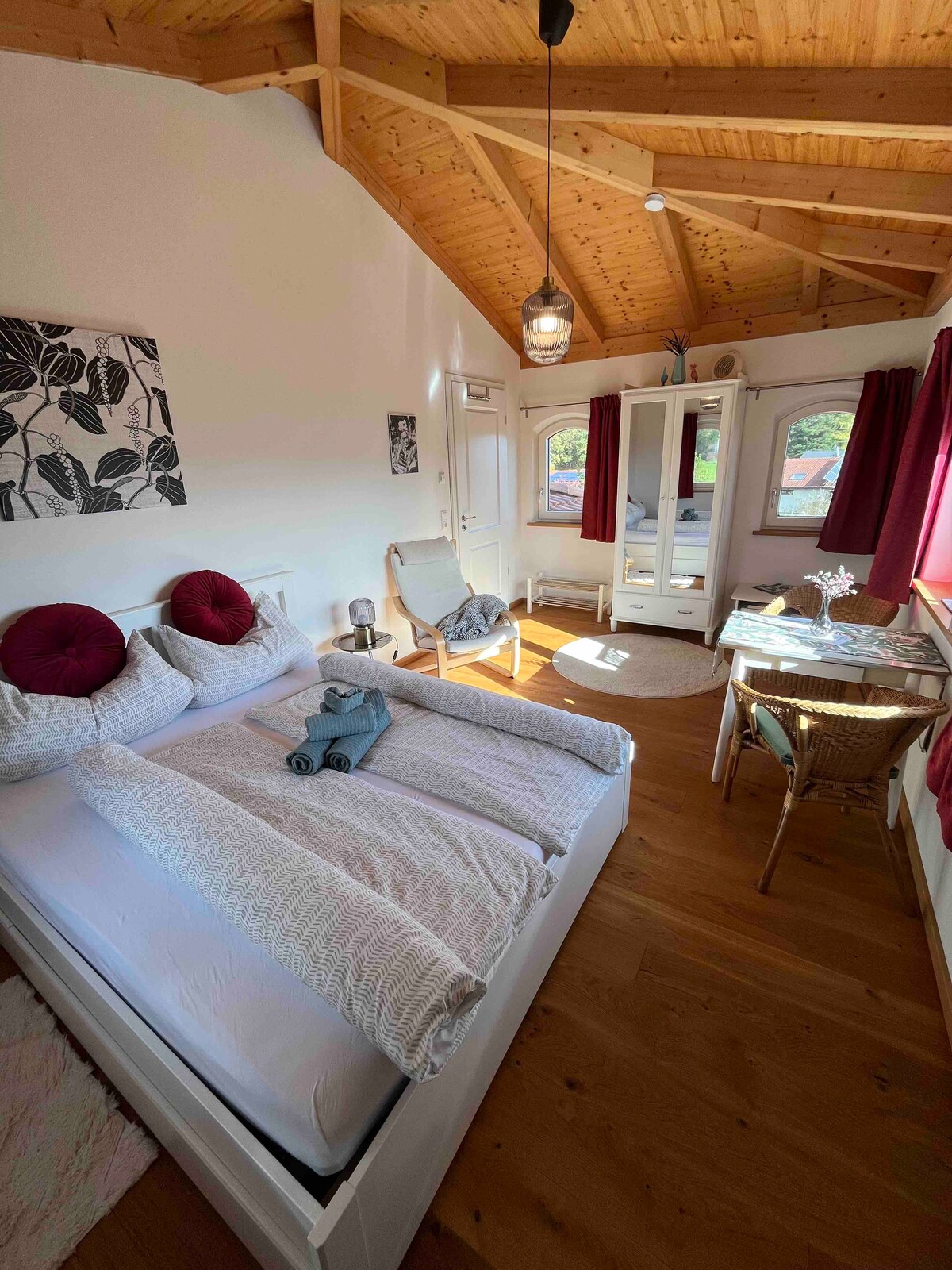 Čudovito novo stanovanje v osrčju Zgornje Bavarske. Popolnoma opremljeno s kuhinjo, kopalnico in vsem, kar potrebujete. Z ljubkim balkonom in velikim vrtom za skupno uporabo – tik ob njem pa šprica majhen potok, kot nalašč za tretmaje po Kneippovi metodi! Idealno za izlete v München, Salzburg ali k jezerom. Idilična lokacija v vasi s številnimi prijetnimi tradicionalnimi gostilnami. 🌿