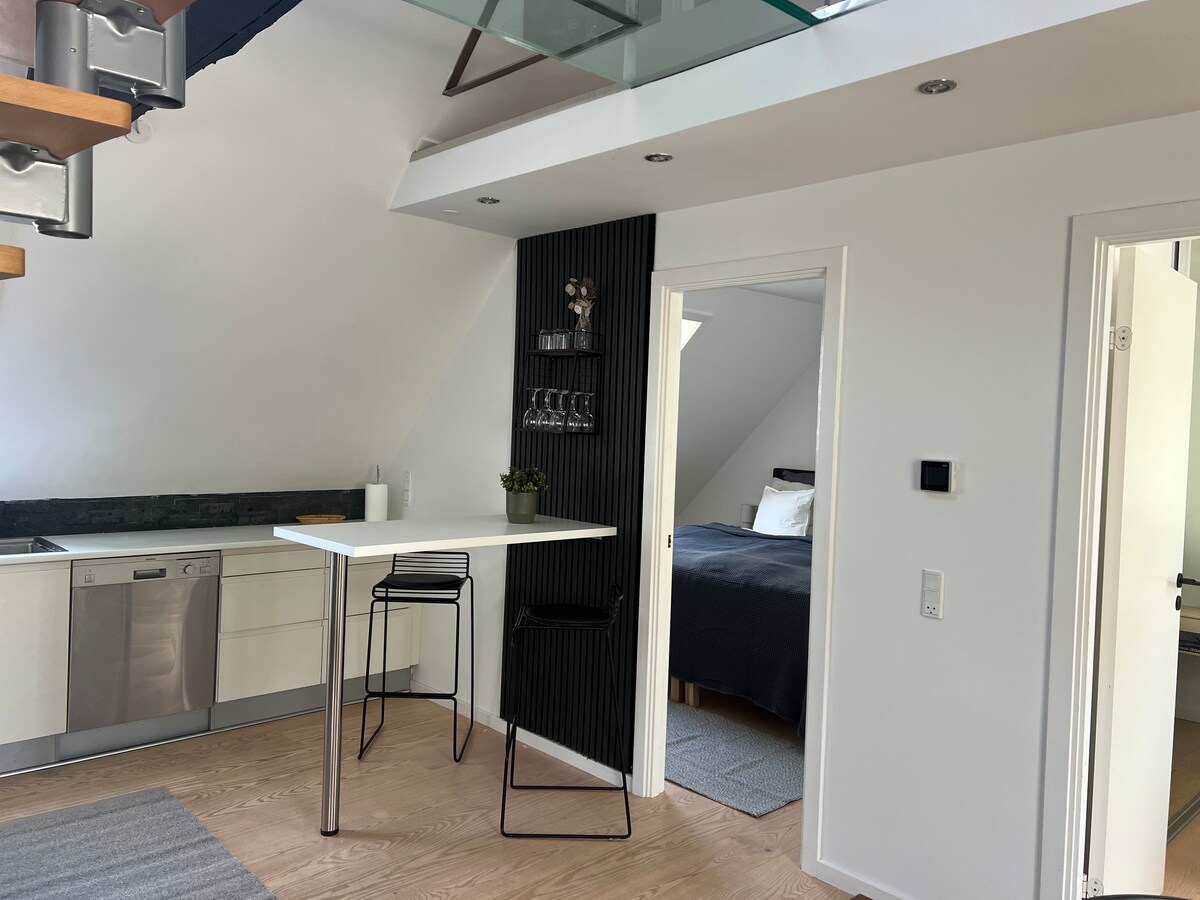 Newly built apartment, 50 m2. Includes 2 double rooms, small kitchen with fridge, coffee maker, mini oven, a single electric hob etc. Living room with sofa, dining area and bath/toilet. Private entrance, parking right by the door. Peacefully and idyllically located by Skamlingsbanken, 10 min. drive south of Kolding and E45. Lots of opportunities to enjoy nature in the area, large path system with beautiful views. Close to the child-friendly Binderup beach.