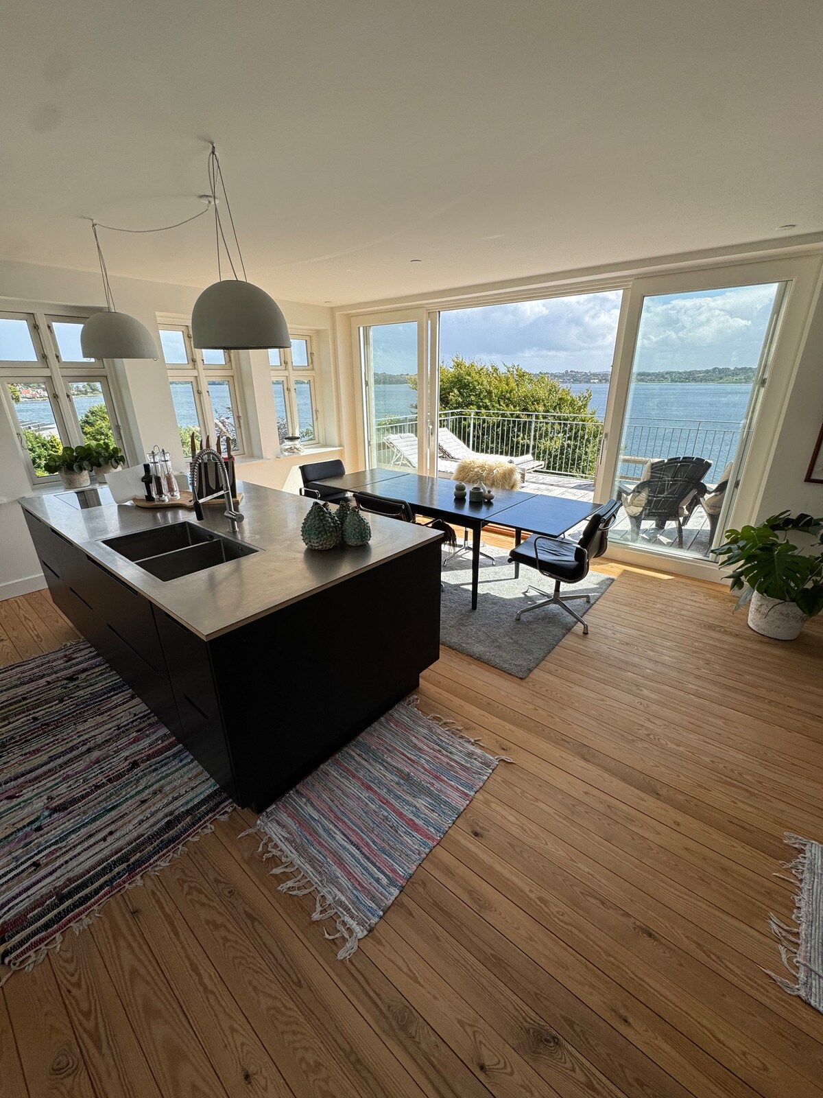 Novozgrajeno veliko stanovanje z razgledom, ki se nahaja v 9. nadstropju tik ob obali v novem pristaniškem območju v Vejleju. Od tu se odpira pogled na fjord Vejle, Bølgen in mesto Vejle. 10 min hoje do centra. V veliki kuhinji/dnevni sobi stanovanja so lepi okenski deli in dostop do enega od dveh balkonov stanovanja s pogledom na fjord. Drugi balkon ima večerno sonce in pogled na mesto. Obe kopalnici imata prho in talno gretje. Na voljo je dvigalo in brezplačno parkiranje.