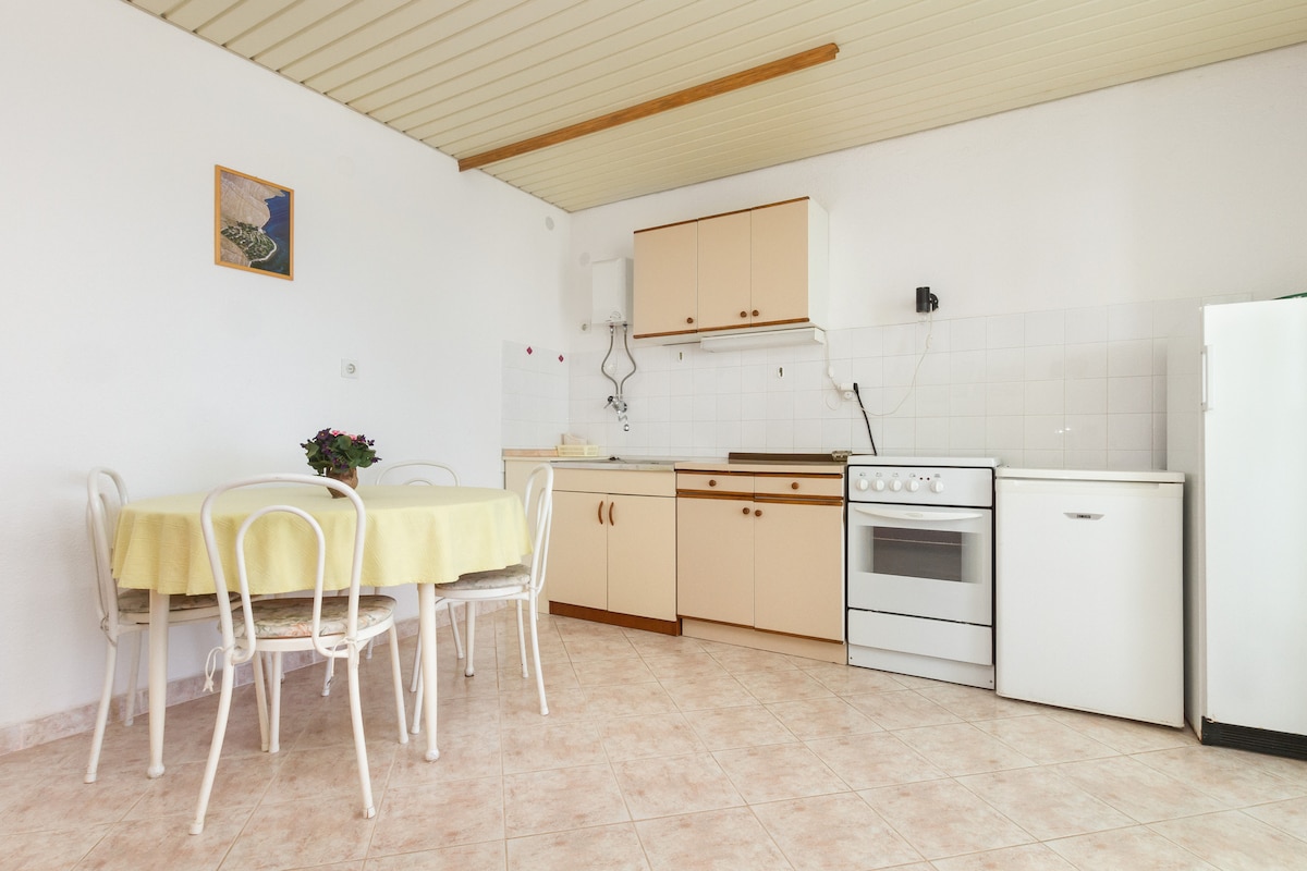 Moje bivališče je blizu nekaj restavracij in jedilnic, plaže ob frančiškanskem samostanu in nočnega življenja. Moje bivališče vam bo všeč zaradi zunanjega prostora - balkona z mizo, kjer lahko uživate v obrokih, ali samo ob kozarcu vina. Hiša ponuja tudi zunanji žar za goste. Apartma se nahaja v mirnem območju, manj kot 15 minut peš od pristanišča in centra mesta. Sestavljen je iz spalnice z zakonsko posteljo, popolnoma opremljene kuhinje z izhodom na balkon in kopalnice.