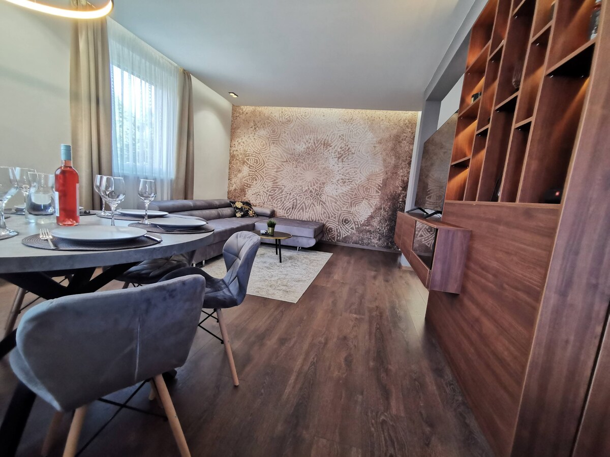 Uživajte v elegantnem doživetju s te osrednje lokacije. Nastanitev se nahaja v samem središču kraja Nové Zámky. Ima možnost brezplačnega parkiranja na zaprtem dvorišču tik pred stanovanjsko stavbo. Stanovanje ima eno spalnico z zakonsko posteljo in neposrednim vhodom v garderobno omaro iz spalnice. V dnevni sobi s prostorno kuhinjo je raztegljiv kavč, kjer lahko tretja oseba udobno spi. To čisto novo in edinstveno stanovanje vas bo navdušilo s svojo elegantno zasnovo in odlično lokacijo.