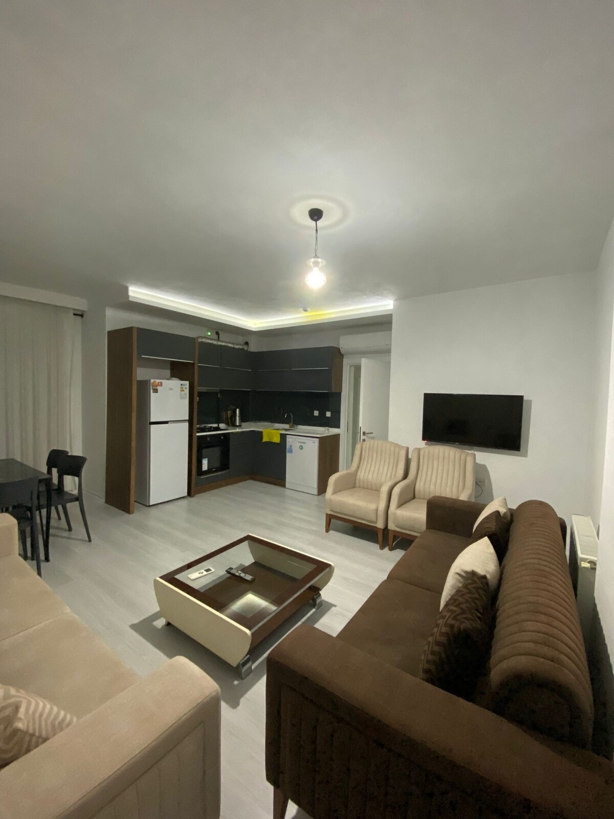 Modern 2+1 Apartment with Easy Access Master bedroom with en-suite double bed Second bedroom with two single beds Living room with L-shaped sofa Air conditioning & central heating in all rooms High-speed internet & Netflix Bright, spacious living area with balcony Close to main street and public transport Walking distance to market & university Short drive to the mall & the world-famous Konyaaltı Beach (5–7 min) Private parking Ideal for families & long-term stays