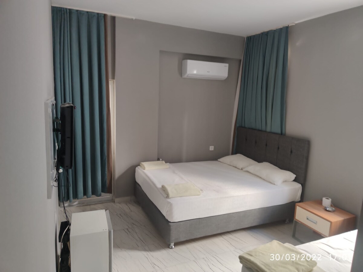 Şehir merkezinde, aileler ve küçük gruplar için ideal bir konaklama sunan bu stüdyo daire, 3 kişilik konaklamaya uygundur. Modern tasarımı, geniş balkonu, doğalgazlı ısınma sistemi ve tam donanımlı mutfağı (tencere, tava, tabak, çatal dahil) ile rahat bir ortam sağlar. 7/24 resepsiyon hizmetimiz ve apartman dışındaki güvenlik kameraları, güvenli ve sorunsuz bir konaklama deneyimi sunar. Şehir merkezinde ailenizle veya arkadaşlarınızla konforlu bir zaman geçirebilirsiniz!