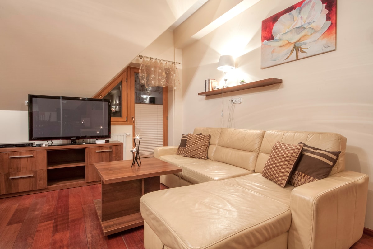 Ponujamo vam zelo edinstven kraj v mirnem predelu, kjer se lahko popolnoma sprostite in začutite čarobno gorsko vzdušje. Daje občutek udobja, topline in sprostitve. Leseni zaključek stanovanja vam bo omogočil, da boste občutili pravo gorsko vzdušje. Z balkona lahko občudujemo čudovit razgled na gore Tatra, vključno z Giewontom.