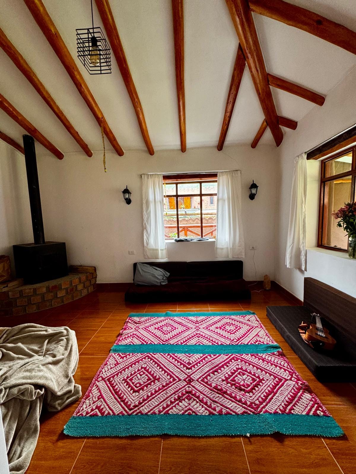 Bienvenido a una cabaña ecológica en el Valle Sagrado de Pisac, ideal para descansar y reconectar con la naturaleza. Combina tradición andina y comodidad moderna, con vistas a las montañas, chimenea, jardín privado, fogata y Wi-Fi fibra óptica, perfecta para trabajo remoto o escapadas largas. Entorno tranquilo, aire puro y total privacidad, a minutos del pueblo. Descuentos especiales por reservas semanales y mensuales.