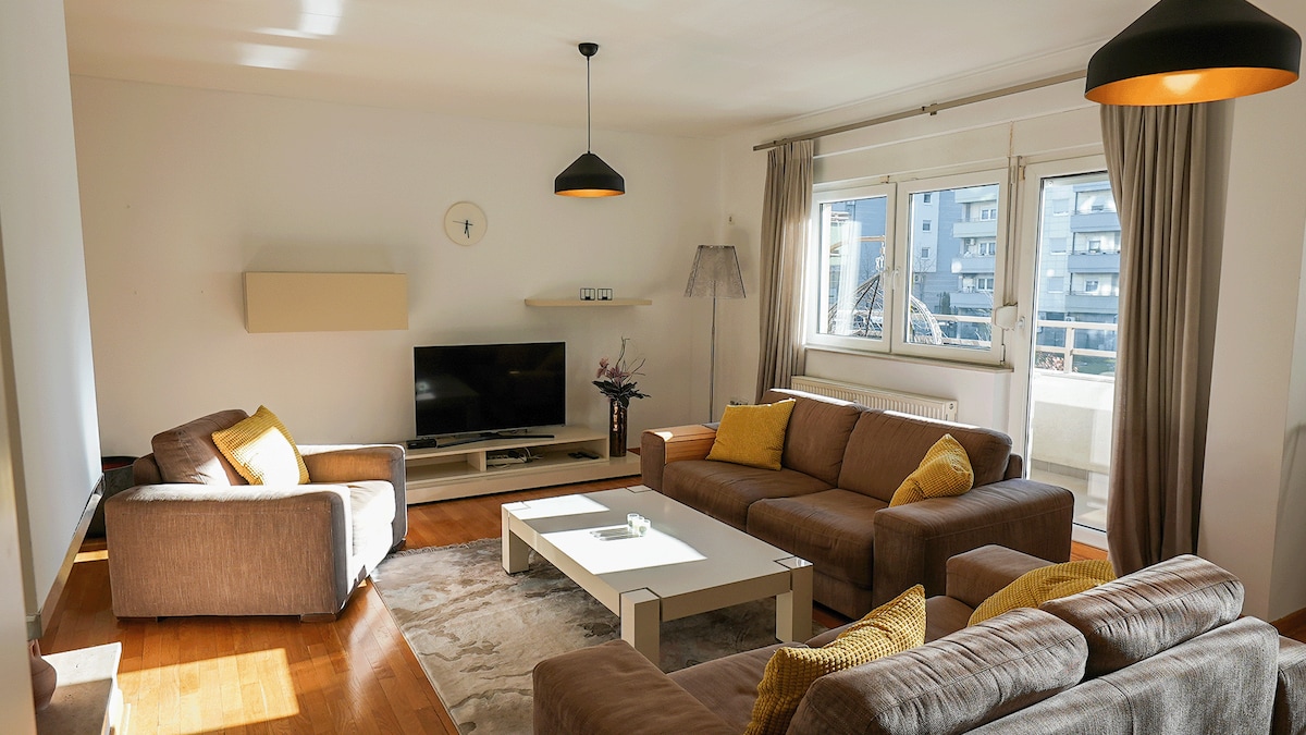 Sprostite se in napolnite baterije v tem elegantnem, razkošnem apartmaju v osrčju Prištine z zasebno masažno kadjo za prijetne večere. Stopite na prostoren balkon in uživajte v svežem zraku in razgledu na mesto. Ostanite povezani s hitrim hitrim Wi-Fi-jem, brezplačnim zasebnim parkiriščem in se sprostite v udobnem bivalnem prostoru s sodobnim pohištvom. Nahaja se v novi in sodobni stavbi z dvigalom in recepcijo z osebjem, le nekaj korakov stran od živahnih kavarn, trgovin in vrhunskih mestnih znamenitosti.