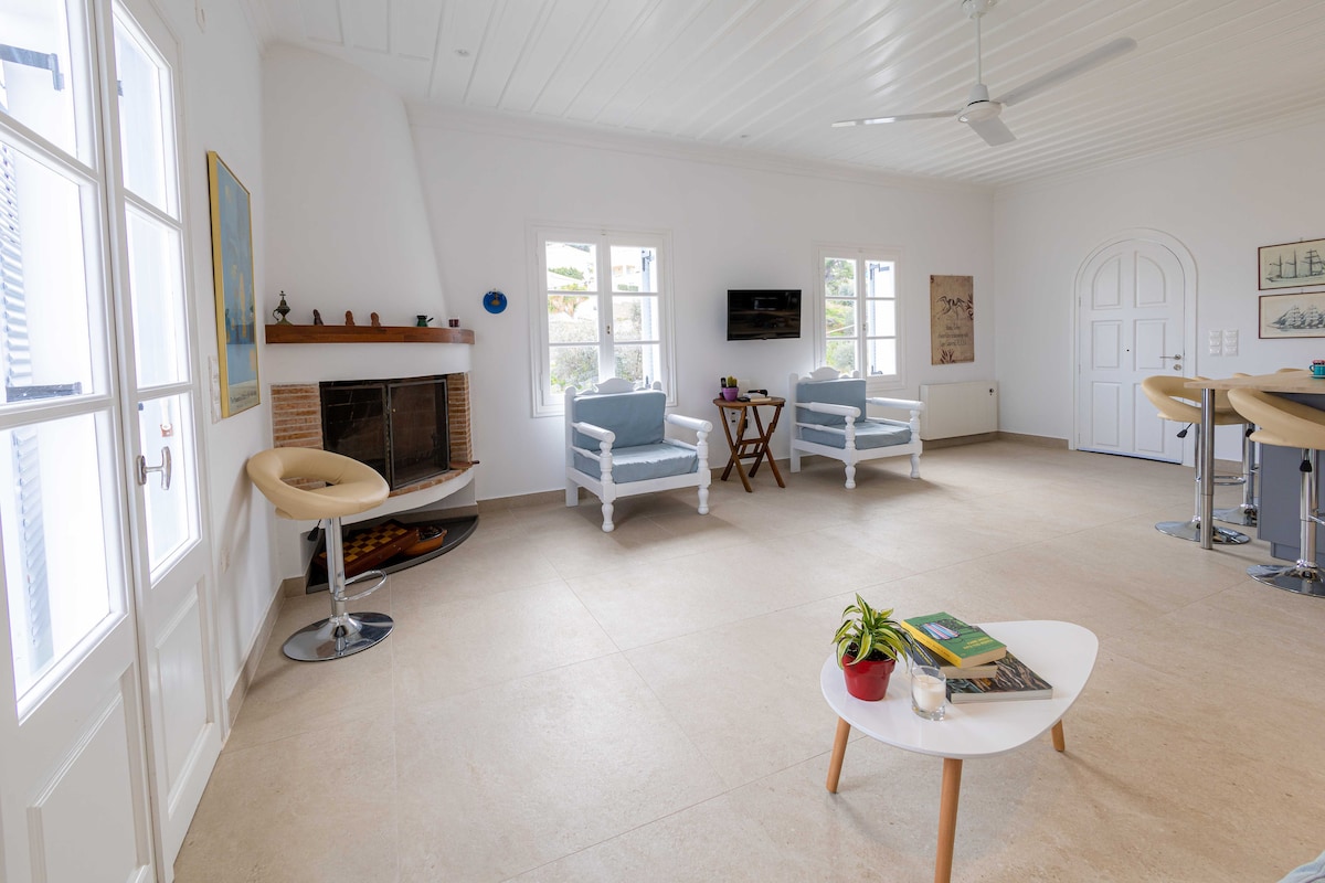 V tej obnovljeni neoklasični vili iz 19. stoletja lahko najdete edinstveno mešanico zgodovinske lepote in elegance. Ta edinstvena vila s površino 209 m2 sestavlja 4 spalnice, 2 kopalnici, 2 dnevni sobi, eno teraso za sončenje, 1 kuhinjo in zasebno dvorišče z veliko zunanjo mizo. Nahaja se v osrčju otoka, v bližini cerkve Agios Nikolaos in 5 minut hoje od Dapije. Plaža Agios mamas je od hiše oddaljena 2 min hoje