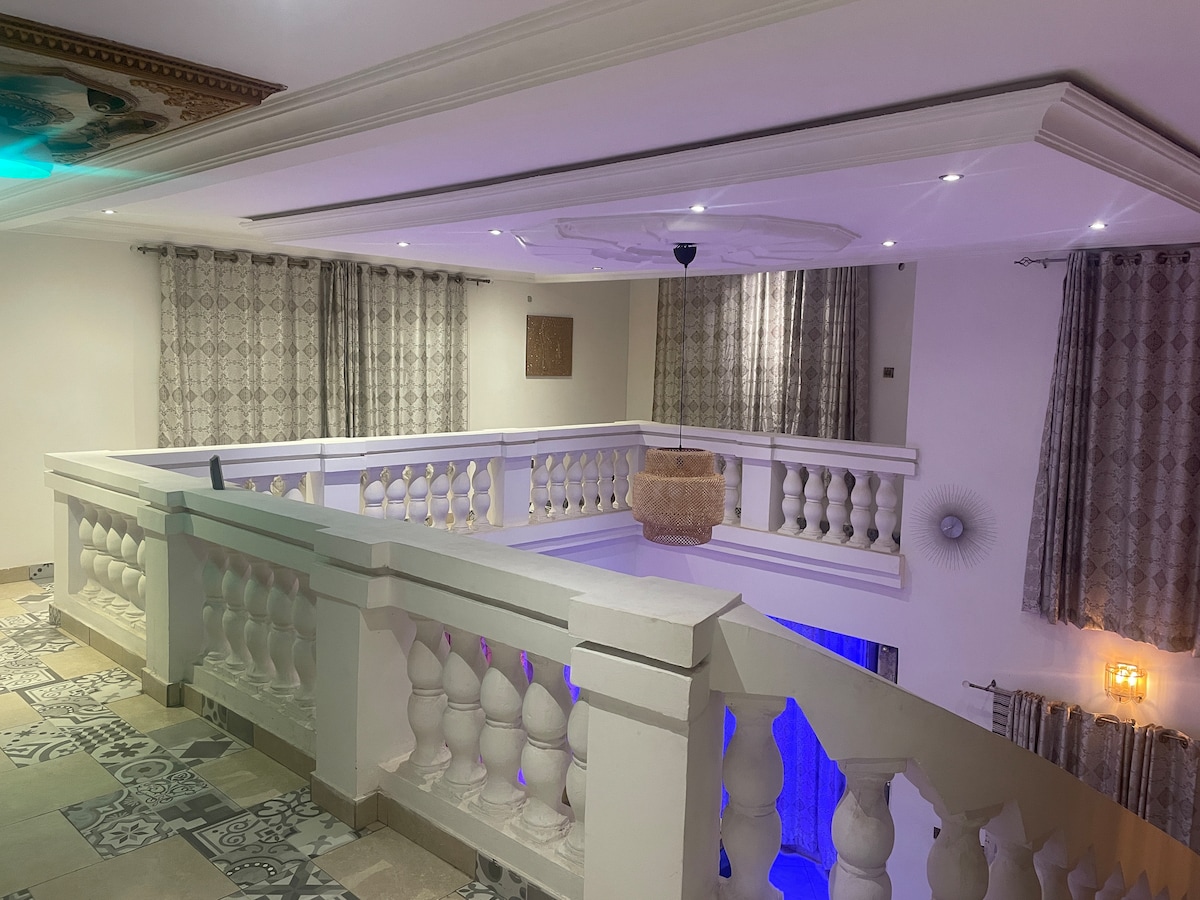 Dobrodošli v prenočišču Janis Deluxe, ki ga upravlja podjetje Aion Management. Razkošno 3-sobno stanovanje v 3. nadstropju s 3,5 kopalnico v kraju Lakeside, Adenta, Accra. Obe spalnici sta v spalnici in nudita udobje in zasebnost. Uživajte v sodobni kuhinji z vsemi aparati, prostornimi dnevnimi prostori in plišasto posteljnino. Sprostite se na zasebni terasi in raziščite mirno marino ob jezeru z bližnjimi parki, jedmi in opremo. Janis Deluxe je vaše popolno zatočišče v bivališču v Akri, ki ima svoj slog.