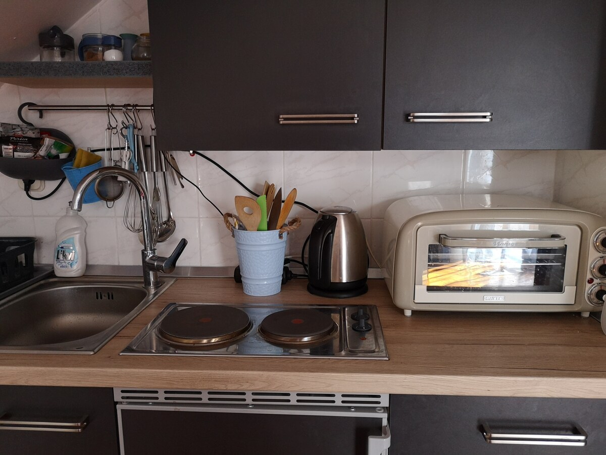 Studio apartma s kuhinjo, lastno kopalnico in ločeno teraso. Apartma je zelo svetlo, ogrevanje je centralno z možnostjo uporabe kamina po želji gostov. Kuhinja je opremljena s hladilnikom in pomivalnim strojem. Na terasi je po želji gostov na voljo tudi žar.