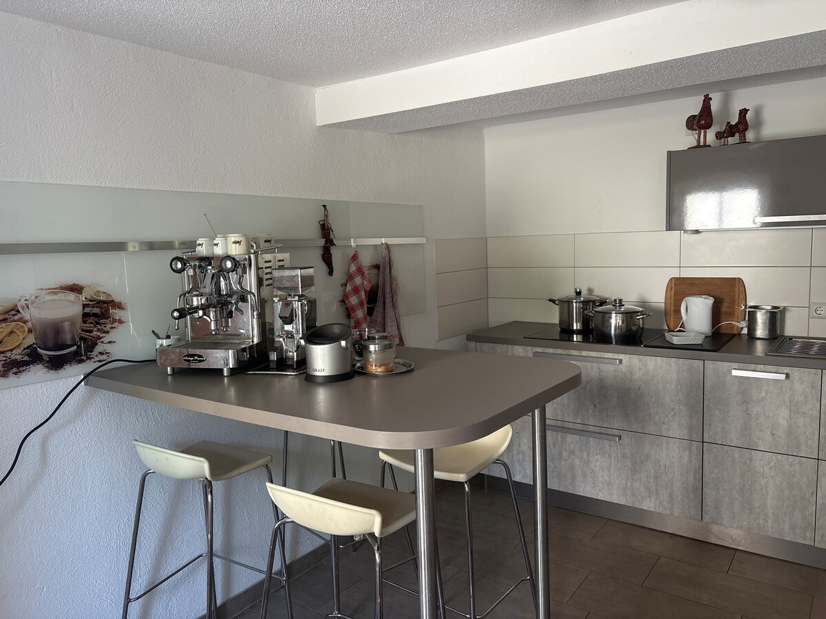 Naše udobno stanovanje v Uffenheimu, v osrčju frankovske vinske regije, ponuja odlično izhodišče za pohode v naravo in kulturne izlete. Dobro vzdrževano vzdušje vas čaka na 65 kvadratnih metrih . Uživajte v miru in raziščite bližnje znamenitosti, kot sta Rothenburg ob der Tauber in Würzburg. Sprostite se v Franconian Spa ali Franconian Free Island Museum of Bad Windsheim. Lokalne restavracije in trgovine so na dosegu roke.