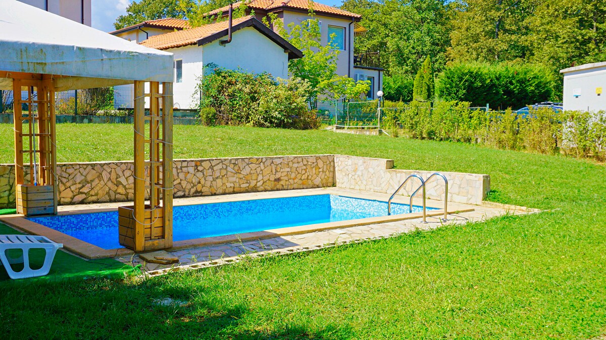 Our charming villa nestled in a picturesque village of Aleksandrovo, just a stone's throw away from the Black Sea. This holiday home is perfect for families seeking a tranquil retreat amidst beautiful nature. The villa boasts 2 tastefully decorated bedrooms. Each bedroom is complemented by its own private bathroom. There is spacious kitchen and living room area fully equipped with all the essentials for cooking and dining. There is swimming pool, garden with pergola and parking space.