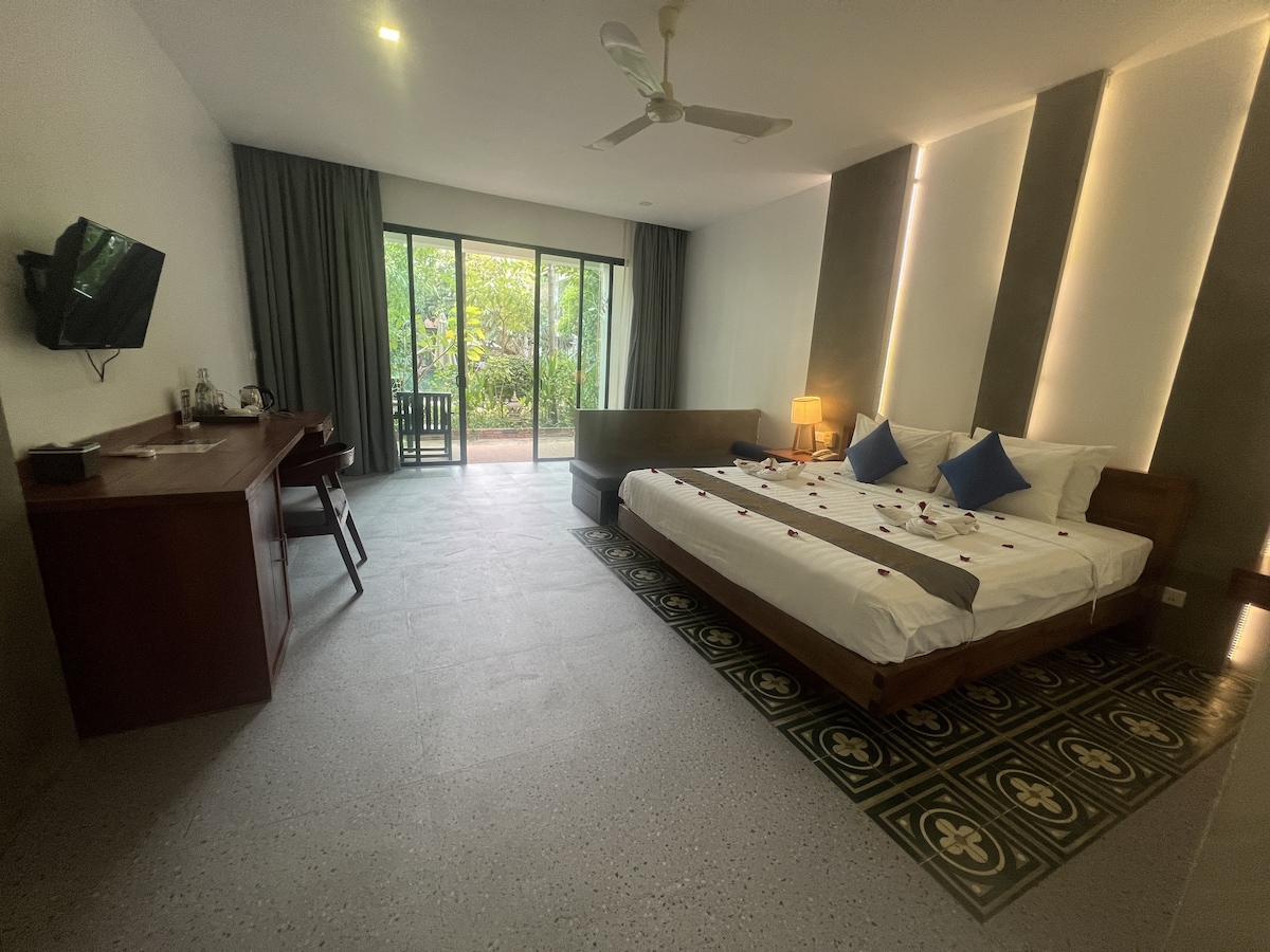 Sprostite se v bungalovu v senci dreves, ki je le 2 km oddaljen od mesta, s slikovitim sprehodom po vasi ob reki, ki vodi do kavarn, tržnic in živahnega življenja v Siem Reapu. Bungalovi Treetop nudijo 6 zasebnih, samostojnih enot s kuhinjami, dnevnimi sobami in balkoni, ki se nahajajo med bujnim zelenjem. Delite obroke v skupnem prostoru za žar, delajte z močnim Wi-Fi-jem in raziskujte z brezplačnimi kolesi ali tuk-tuki za 1 $. Idealno za popotnike, ki iščejo miren oddih in pristno lokalno kulturo.