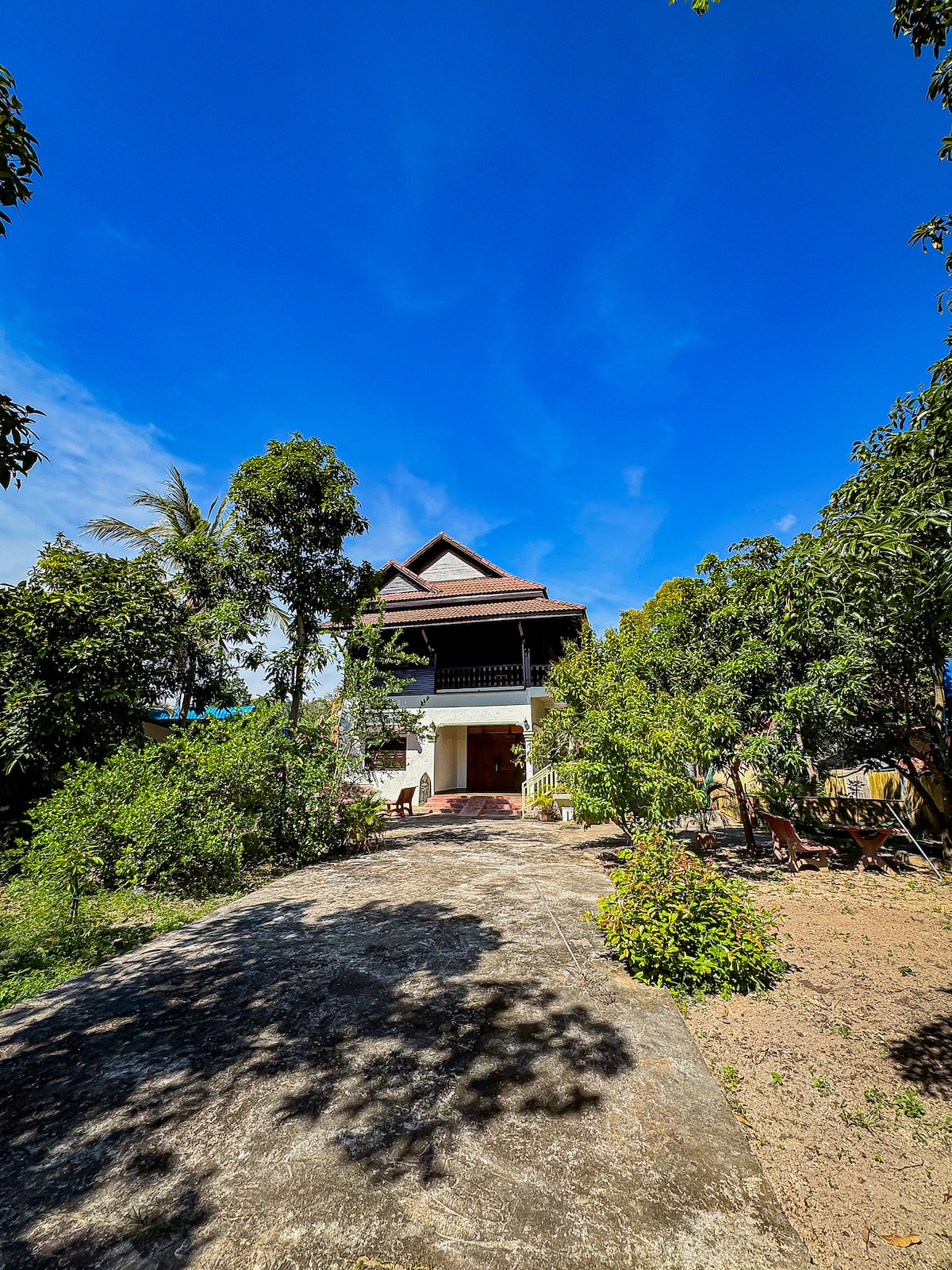 Apartment surrounded by beautiful garden in a peaceful neighborhood within a few minutes of Siem Reap downtown. Suitable for 1 or 2 people. Pet friendly. Free parking available.