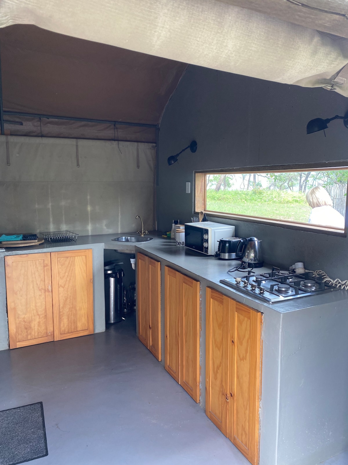 Luksuzni šotorski kamp v nizkem grmu z osupljivim razgledom na gore in brezplačnimi prostoživečimi živalmi. Resnično edinstveno doživetje, kjer naši gostje prejmejo pristno izkušnjo z grmovjem, brez meja med seboj ter naravnimi živalmi in pticami. Sedite na terasi s skodelico kave, medtem ko se žirafa mirno sprehaja mimo vas. Priložnost, da se sprostite, napolnite baterije in se ponovno povežete z naravo in sabo.