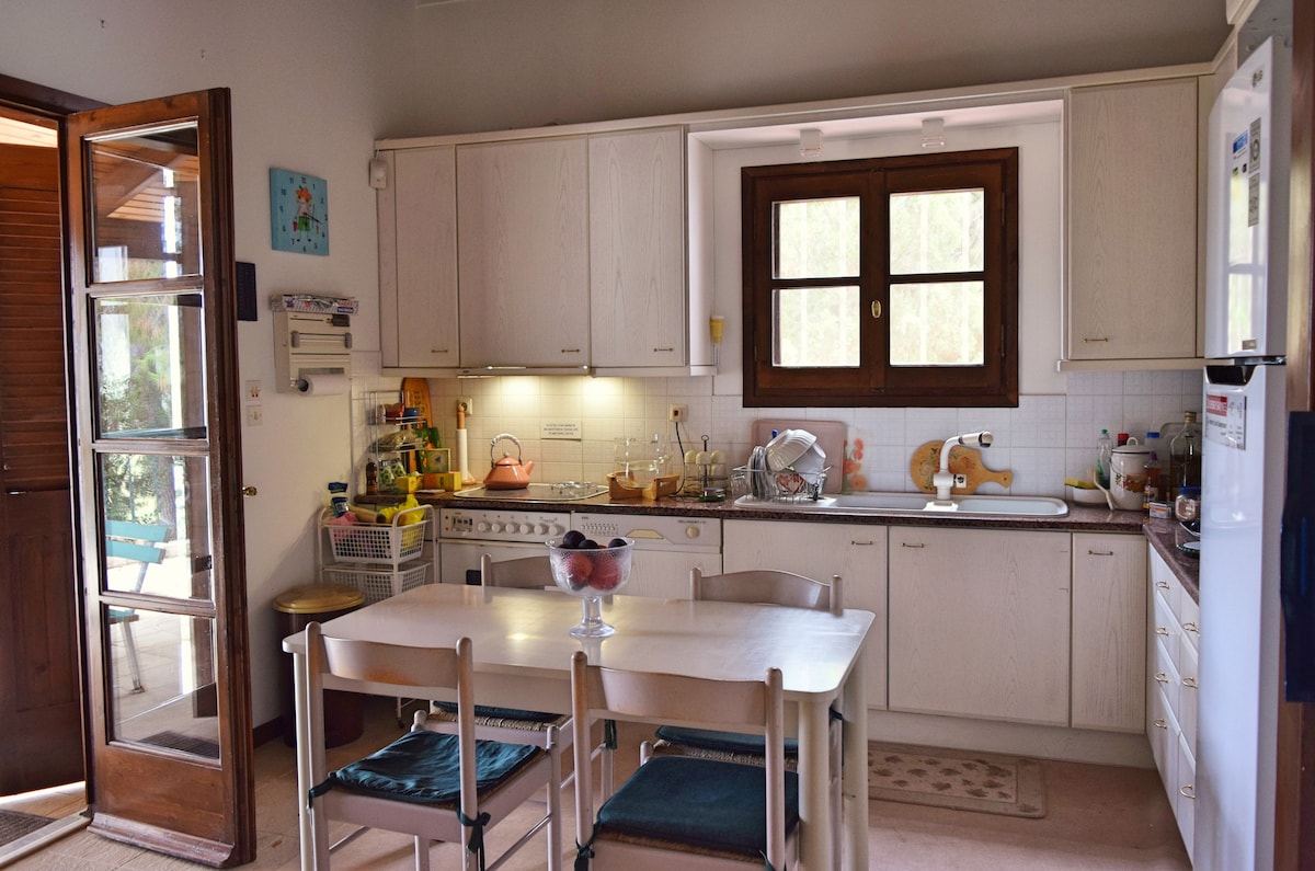 Naša hiša je od mesta Chalkida oddaljena 22 km, pol ure vožnje z avtomobilom. Letališče v Atenah je oddaljeno 115 km, uro in pol vožnje z avtomobilom. Plaža Politika je oddaljena le 15 minut, 11 km. Hrano in druge potrebščine lahko kupite v kraju Psachna, ki je 10 minut (6 km) oddaljen od hiše. Na voljo je tudi zasebni bazen (najmanjša globina 1,2 m, največja globina 2 m). Avto je nujen. V zimski sezoni vas pričakujemo ob toplem kaminu z brezplačnimi drvmi. Bazen je odprt od 17. aprila!!