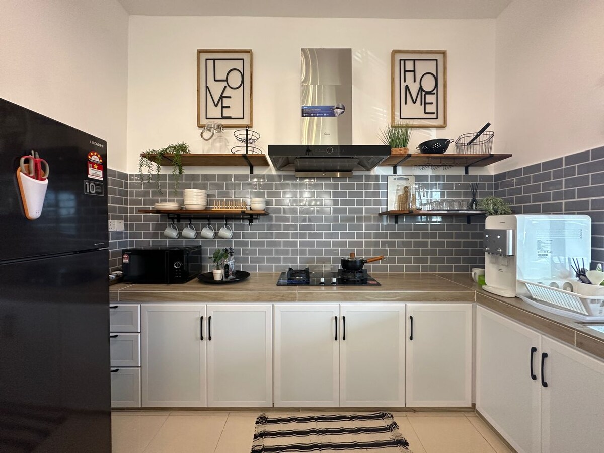 Dobrodošli v udobni hiški na deželi! Elegantna enonadstropna vogalna hiša je v celoti opremljena in klimatizirana. Ima 2 udobni spalnici, 2 čisti kopalnici in čudovito zasebno dvorišče, ki je kot nalašč za družine, pare ali majhne skupine. 📍Strateška lokacija: 5 minut do Alma AEON & Lotu's 10-15 minut do KTM BM, bolnišnica, Tokun Hill, Icon City, Auto City 30-35 minut do IKEA, Design Village, Georgetown 🚗Brezplačno parkiranje | 🍽️Bližnje restavracije |🌿Mirna soseska | Hiter Wi-Fi