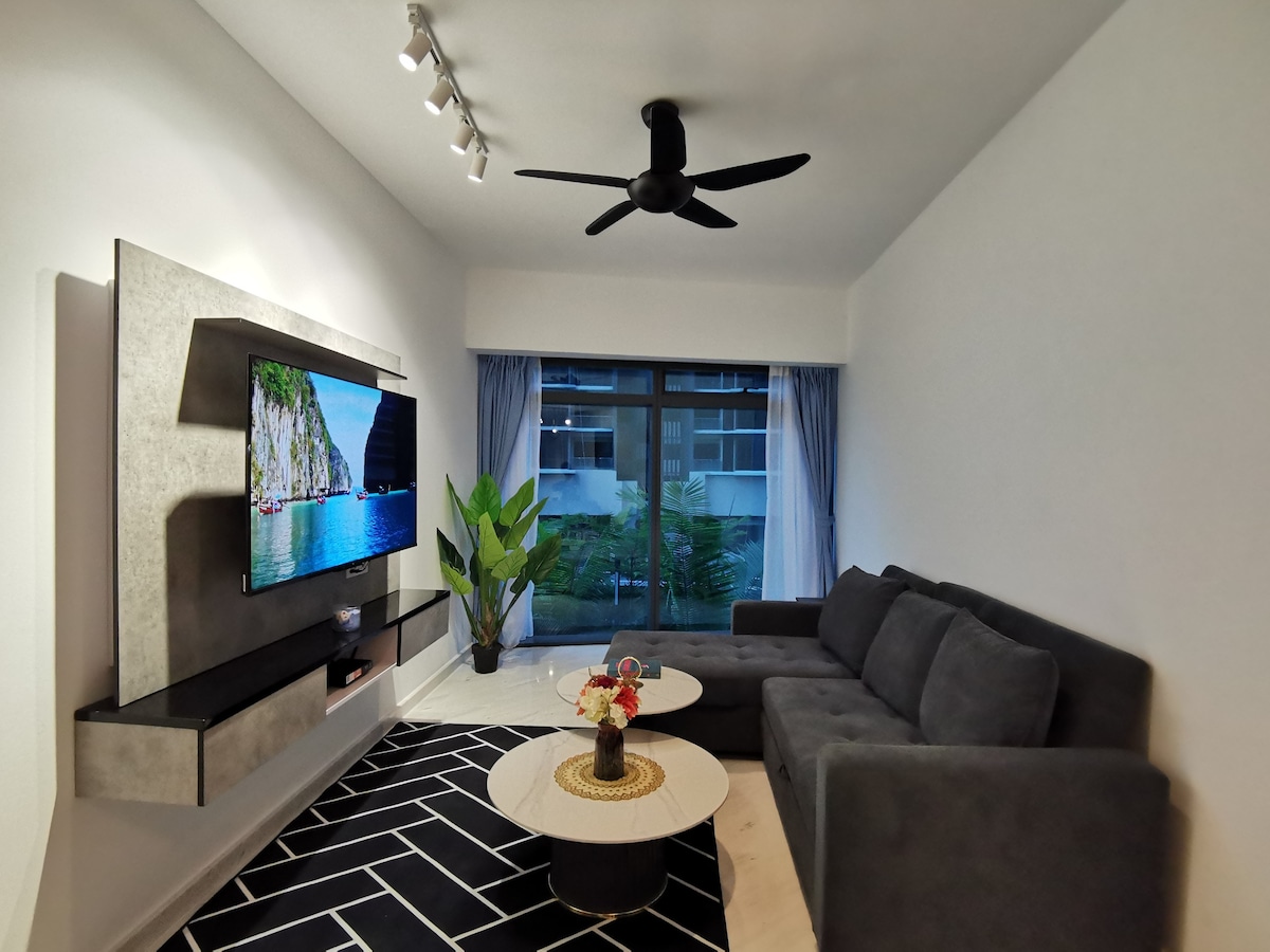 Dobrodošli v našem zatočišču Skyline 🌇✨ Prostorno prenočišče s 3 spalnicami, ki se dviga nad mestom v zgornjem nadstropju, ponuja panoramski razgled na bleščeče obzorje Kuala Lumpurja. Kot nalašč za družine in skupine do 8 oseb, je eleganten oddih, poln svetlobe, le 10 minut hoje od KLCC. Ne glede na to, ali srkate kavo ob sončnem vzhodu ali se sproščate ob mestnih lučeh, je razgled vedno glavni dogodek.