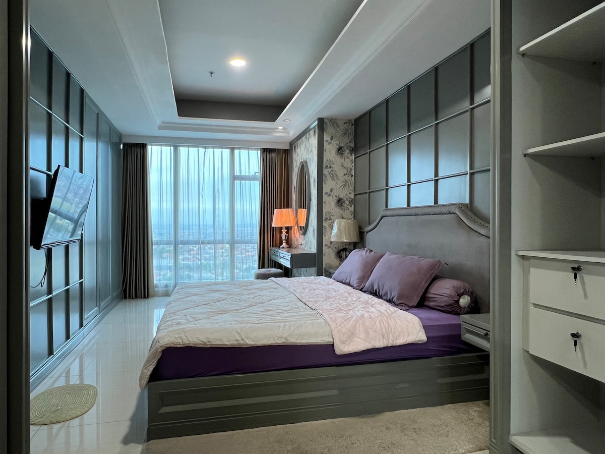 Stanovanje Paneya @Benson z največjo garsonjero v stolpu Benson Tower. Moderna in razkošna nastanitev se nahaja na priročni lokaciji nad nakupovalnim središčem Surabaya Pakuwon. Največje nakupovalno središče v Indoneziji. Ima neposreden dostop do nakupovalnega središča Pakuwon. Podnevi ponudite izjemno zeleno pokrajino in čudovito mestno svetlobo zahodne Surabaye. Opremljen z 2 zakonskima posteljama(1 raztegljiva postelja),kuhinjskim pripomočkom, pametno televizijo, zasebno kopalnico, sušilcem za lase, hladilnikom in grelnikom vode. Na voljo sta tudi BREZPLAČEN BREZŽIČNI INTERNET in Netflix