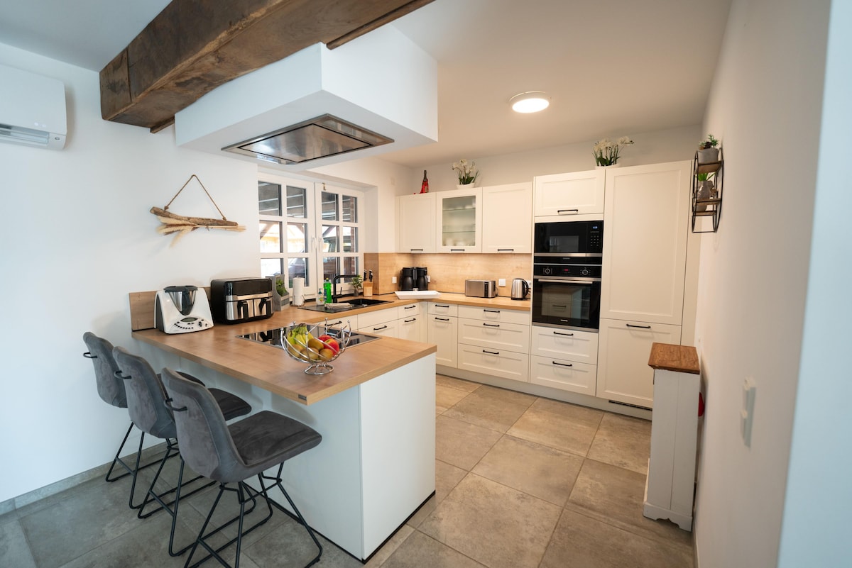 HYGG INN - Naš prijeten kraj, kjer lahko uživate v dobri strani življenja s svojimi najljubšimi ljudmi! Hiša, ki je bila v celoti posodobljena leta 2021/2022, ponuja številne posebnosti: prostorne sobe, vzmetne postelje, 65-palčno pametno televizijo, dežno prho, električno polnilno postajo, vrt s teraso za sončenje velikosti 60 kvadratnih metrov, zunanja kuhinja z žarom Weber - nič ne manjka! Plinski kamin (trenutno je še v gradnji! Od 22. julija) v zaprtih prostorih in savna v zunanjem prostoru vas vabita, da se boste počutili udobno tudi v hladnih dneh.