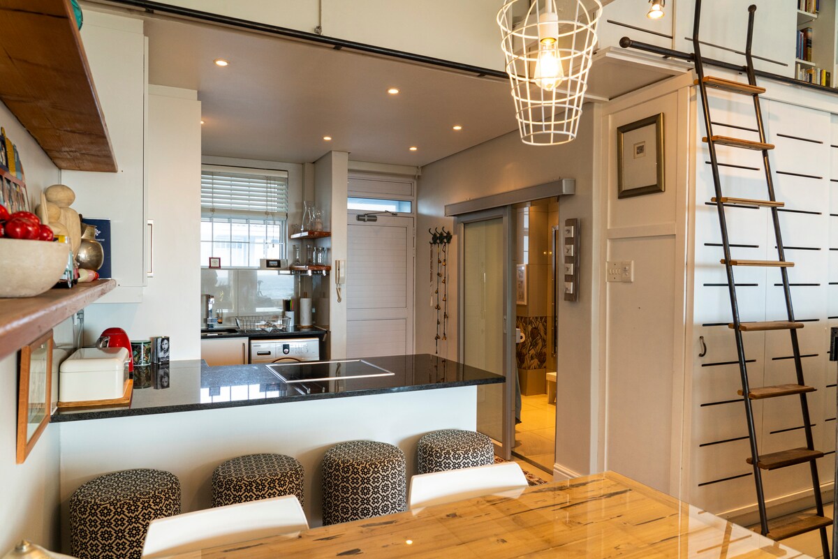 Doživite življenjski slog Cape Towna v tem prostornem enosobnem predelanem stanovanju s površino 92 m2 na priljubljenem križišču Victoria Junction v De Waterkantu. Uživajte v izjemno hitrem Wi-Fi-ju, ekološki klimatski napravi, pametnem televizorju z Netflixom, zasebni terasi, zunanjem bazenu in non stop varovanju. Sprehodite se do ulice Bree Street, V&A Waterfront, kavarn, galerij in nočnega življenja. Idealno za pare, poslovne popotnike ali popotnike, ki iščejo elegantno, varno in osrednjo bazo v najbolj živahni soseski Cape Towna. ☆Če želite to dodati na seznam želja, kliknite ❤️ v zgornjem desnem kotu ☆