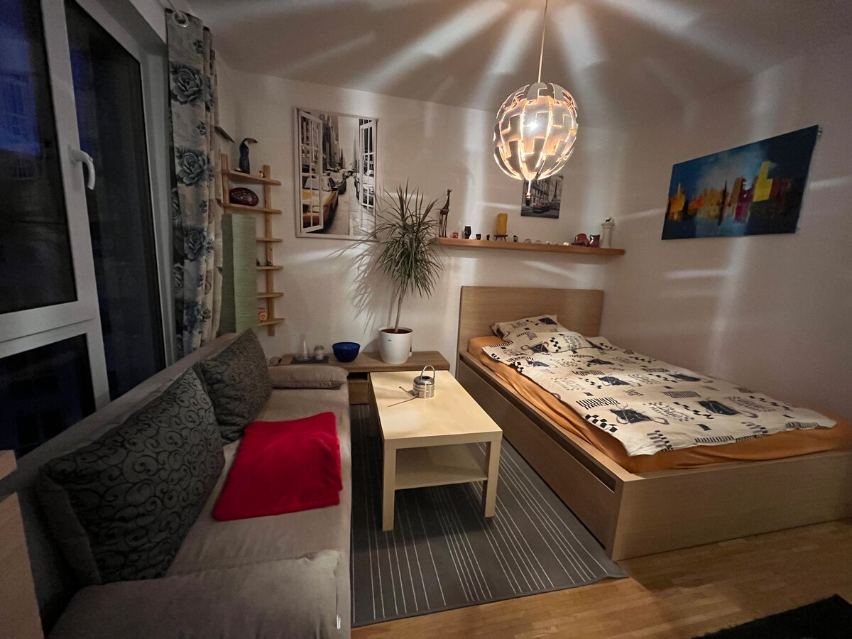 Die lichtdurchflutete Wohnung ist neu renoviert und möbliert. Das Wohn- und Schlafzimmer verfügt neben einem großen Queen-Bett (160cm), ein heimkinoreifes 50" großes 4k-Smart-TV mit Netflix und Amazon Prime Zugang, einen Arbeitstisch, ein Kleiderschrank und ein Sofa. Zudem gibt es eine Küche mit voller Ausstattung inkl. Waschmaschine und ein komplett neu saniertes Bad mit Dusche.