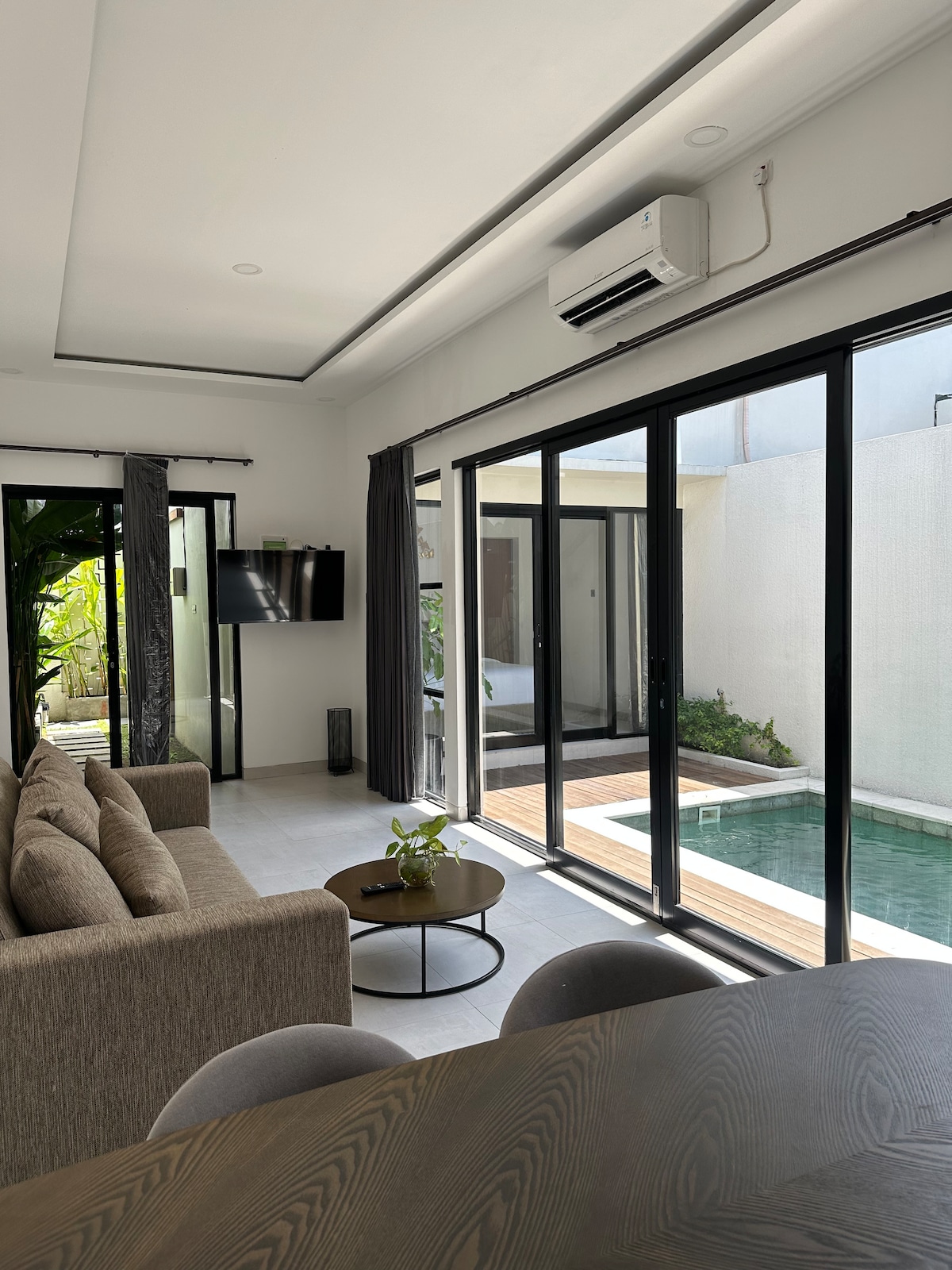 Brand New Villa in a Prime Umalas Location • 3 air-conditioned bedrooms with breathtaking jungle views • 3.5 modern bathrooms with premium amenities, slippers & hairdryers • Huge private pool surrounded by tropical greenery • Elegant open-plan living, dining & kitchen area • 300 Mbps Wi-Fi — ideal for work & streaming • PS5, Netflix on request • Baby cot & high chair on request • Daily cleaning with fresh towels & linens • Concierge service: scooter rentals, spa bookings, private drivers & more