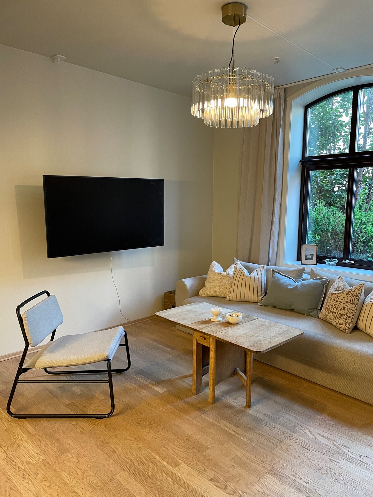 Nyt en stilfull opplevelse på et sted med meget sentral beliggenhet rett ved Bystranda og AQ spa og badeland midt i Kristiansand. Meget tiltalende nyoppusset leilighet med smakfulle detaljer som hele 2,9 meters takhøyde og nye møbler for deg som ønsker å leie med det lille ekstra. Flott utsikt til Bystranda og Otra fra terrasse med solrik lun balkong. Felles takterrasse med sol hele dagen, nydelig utsikt over byen og skjærgården. Nærhet til sjø, strand, båtliv og sentrum. Hunder er velkomne.