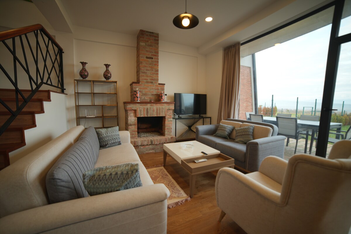 Ta očarljiva vrstna hiša se nahaja v mirni vasici Nasamkhrali, le 10 minut vožnje od Telavija in 1,5 ure od Tbilisija. Ponuja dve udobni spalnici, popolnoma opremljeno kuhinjo in udobno dnevno sobo s kaminom. Prenočišče je kot nalašč za delo ali prosti čas. Vključuje namenski delovni prostor z osupljivim razgledom in hiter Wi-Fi za udobno bivanje. Pomagamo vam organizirati različne vinske oglede in zabavne dejavnosti