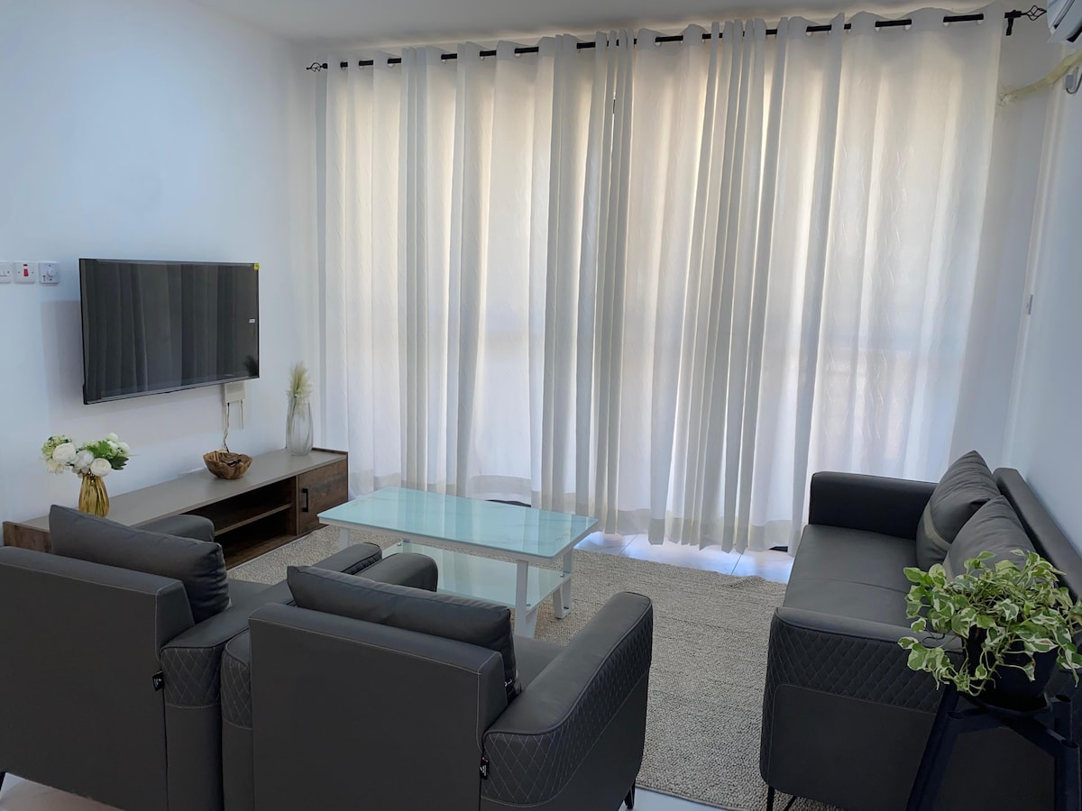 Bivajte v prefinjenem penthousu s pogledom na morje v Nyali, ki je zasnovan za zasebnost in uživanje. Ponuja tri prostorne spalnice z lastno kopalnico in pametnimi televizorji, vključno z mirno glavno spalnico z zasebnim balkonom, gugalnim stolom in masažno kadjo. Uživajte v elegantnem salonu z zvočniki JBL, popolnoma opremljeni kuhinji, klimatski napravi, dvigalu, rezervnem napajanju, varnostni službi, ki je na voljo non stop, in skupnem bazenu.