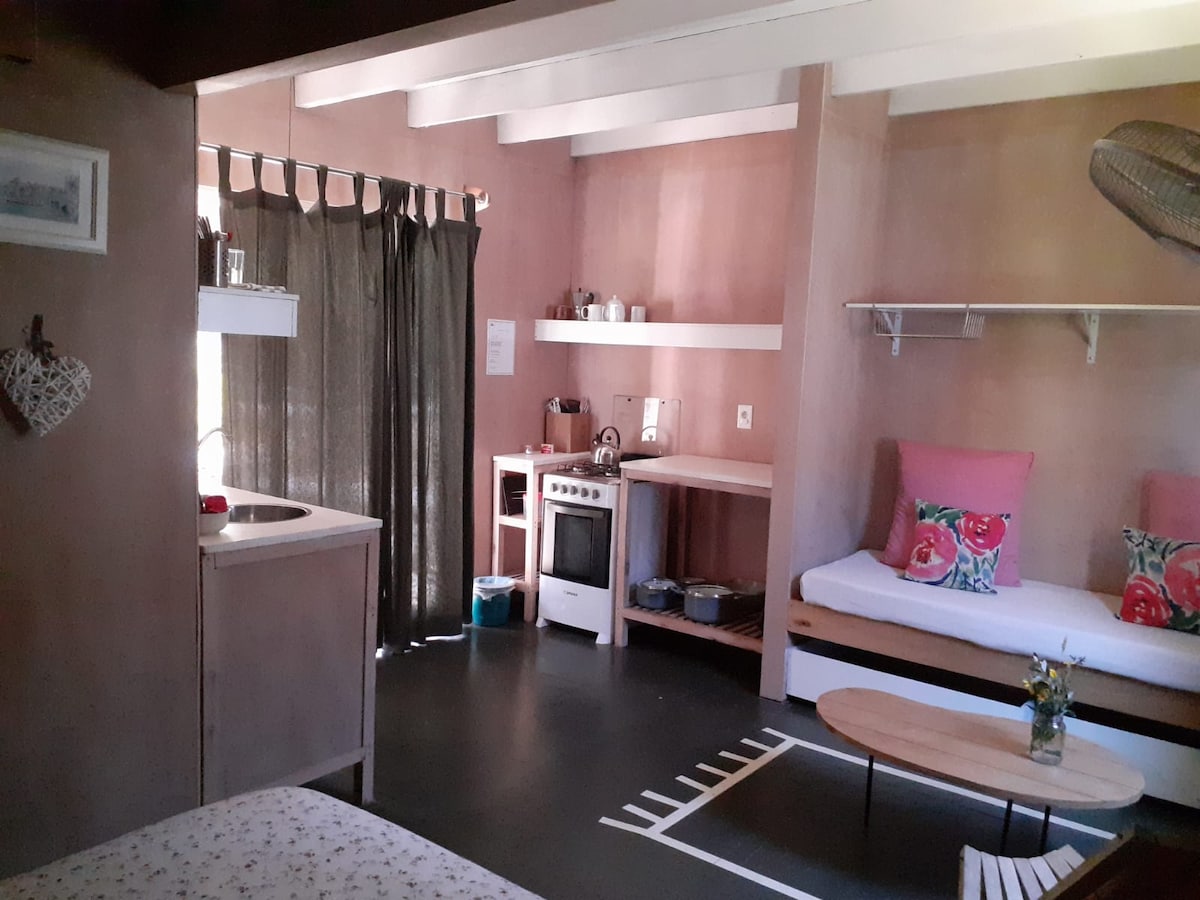 Prijetna mini-hiška, zgrajena iz naravnih materialov za 2 osebi (z dojenčkom) na mirni lokaciji, približno 1 km od sanjskih plaž La Paloma, 1,5 km od avtobusne postaje in 2,5 km od centra. Na voljo je parkirišče, Wi-Fi, zunanji žar in nakupovanje (majhna trgovina z živili in pekarna približno 150 m). Idealno za sprostitev sredi majhnega vrta s prostoživečimi živalmi.