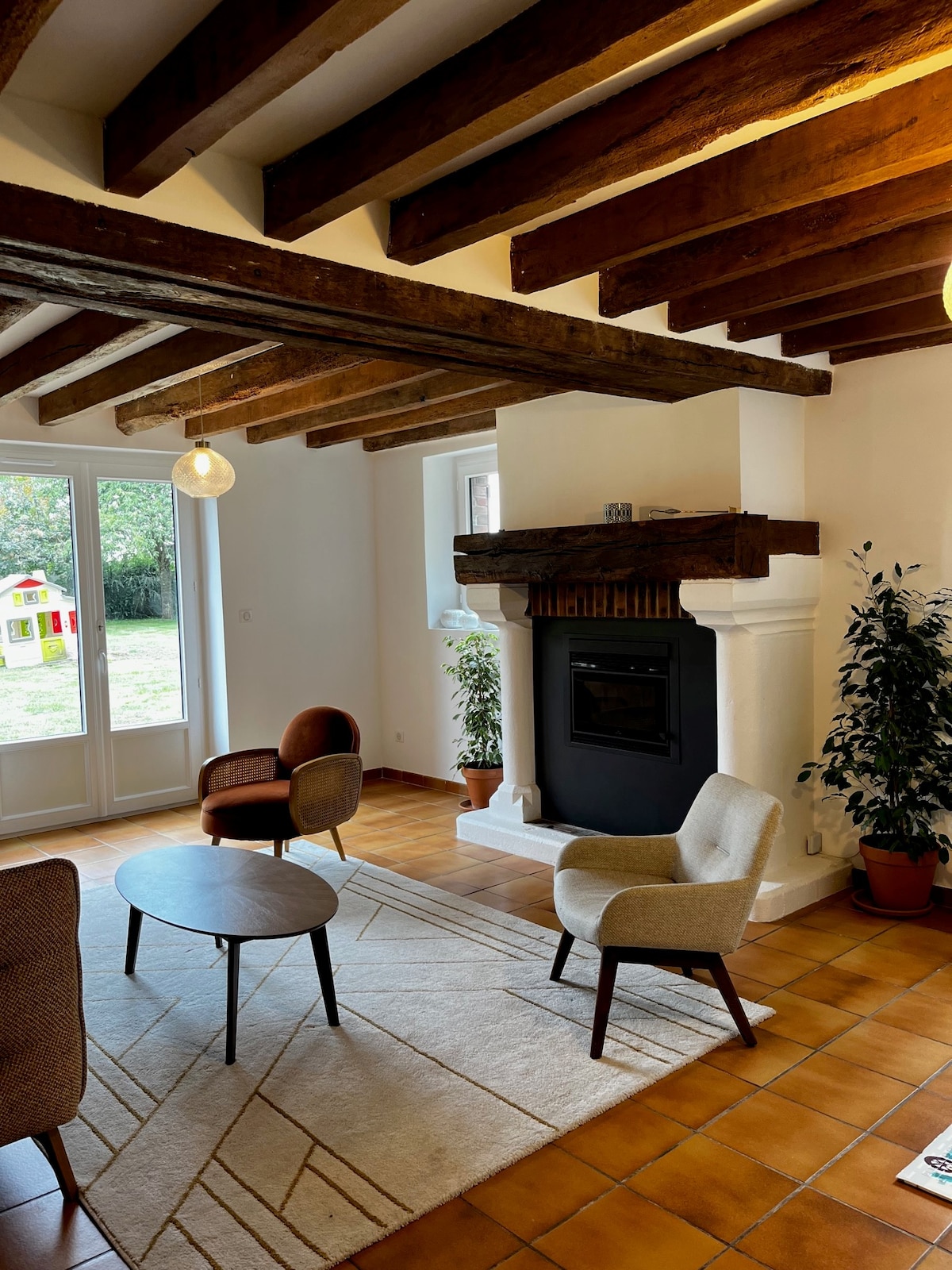 1 uro od Pariza, na meji med Ile de France in Normandijo, ponujamo normandsko hišo, ki lahko sprejme do 15 ljudi, v parku, ki obsega 2 ha. Dobro vzdrževana, z zasebnim teniškim igriščem, zasebnim bazenom (od junija do avgusta), igriščem za petanko, gugalnicami. 18-luknjno igrišče za golf je oddaljeno 10 minut vožnje. Uravnotežena mešanica tradicije in sodobnosti je idealno okolje za bivanje s prijatelji, družinami ali sodelavci.
