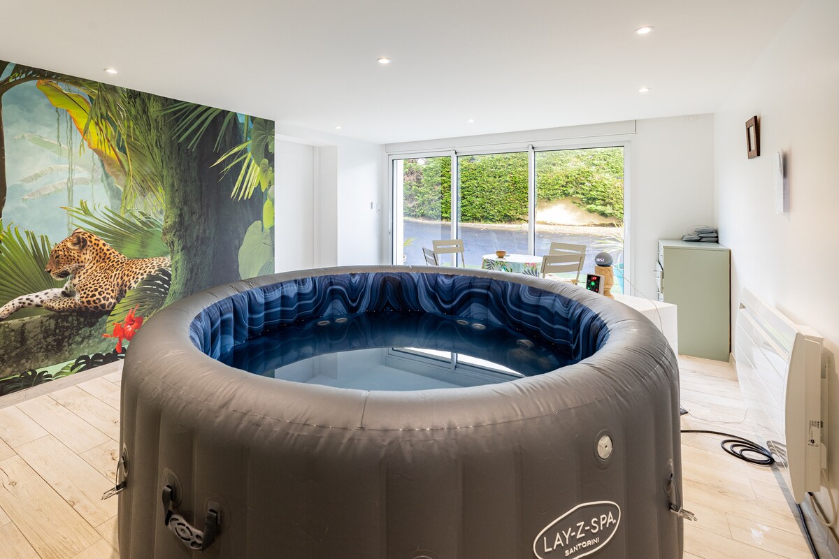 situé à la bruffiere, vous êtes à 2min à pied de super u et autres commerces. vous êtes placé à 25 min du puy du Fou,5min du château de tiffauge (château barbe bleu,)15min de clisson et son festival hellfest,35min du zoo de la boissiere,1h de la mer.(sable d'olonne)1h du zoo de planète sauvage Vous avez à disposition une chambre parentale avec accès salle de bain une cuisine équipée et un salon avec un canapé convertible. Nous vous proposons un coin détente avec jaccuzzi et une petite terrasse.