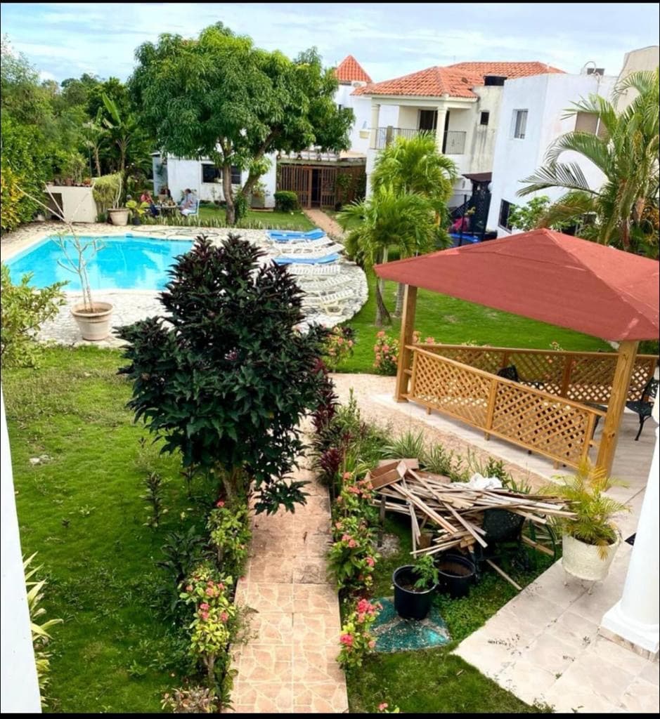Lleva a toda la familia a este fantástico lugar a solo 5 minutos de la playa(club de playa privado). Con bastante espacio para disfrutar, en el prestigioso complejo Guavaberry golf and resort. Para 18 personas -5 Habitaciones grandes todas con aire acondicionado, smart tv, abanicos bluetooth. -Habitación de servicio con su baño -5 Baños. -Sala star -Gazebo amplio -Piscina -Jacuzzy -Cancha de baloncesto -Mesa de Billar -Barbecue(BBQ) -Agua caliente permanente -Area de lavado con maquina de lavar
