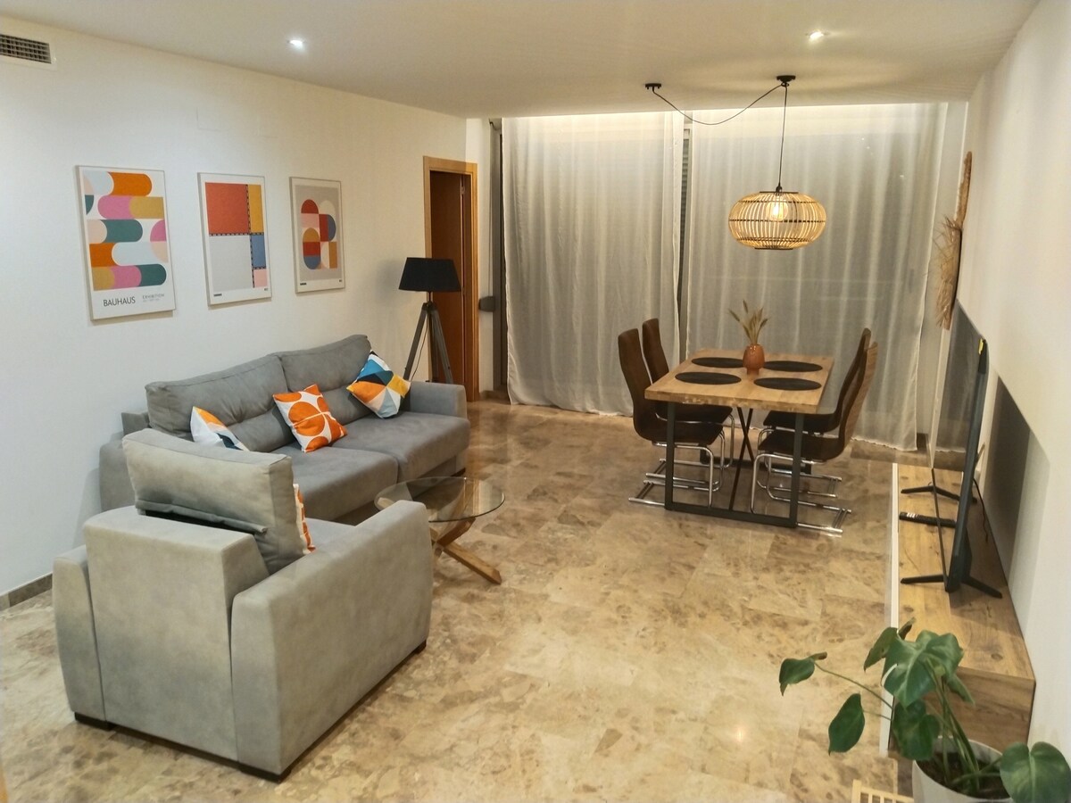 - Chic apartment, perfect for couples or up to 3 people. - Cozy design with all the necessary amenities. - It is surrounded by supermarkets, stores and restaurants. - The apartment has 2 bedrooms and 1 bathroom - Fully equipped kitchen with oven, microwave, coffee maker and utensils. - Heating, air conditioning, washing machine, TV with high definition and Netflix, and WIFI. Amenities: - Crib and high chair available upon request. - Bed linen and towels