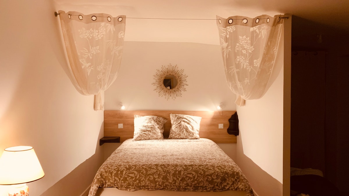 Očarljivo bivališče z zasebno teraso in spalnico. Ta očarljiva popolnoma prenovljena nastanitev, ki se nahaja 5 minut od kraljevega gradu Blois, se nahaja na odlični lokaciji za obisk naše čudovite regije. Zelo preprosto parkiranje pred hišo. Wi-Fi (vlakna) 500 m od nastanitve: Tržnica Carrefour, pekarna, restavracija, banke... Lepo se imej. V veselje mi je, da sem vas sprejel.