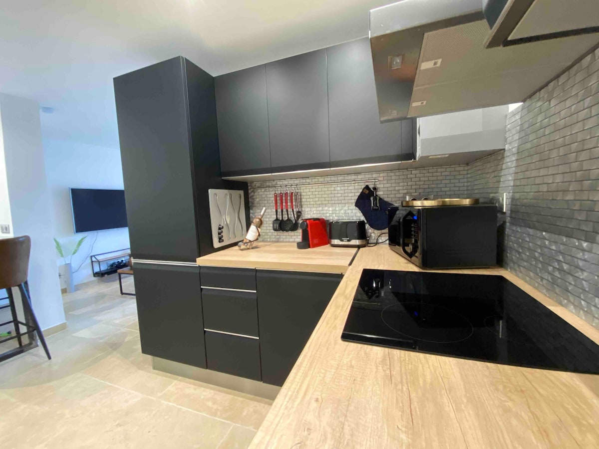 Čudovita garsonjera s površino 30 m2, ki je v celoti opremljena na višini La Ciotata v varnem bivališču. Zasebno parkirno mesto. Ocenjeno 3 ⭐️ Klimatska naprava. 1. in najvišje nadstropje z dvigalom, zelo tiho, sodoben dekor. Wi-Fi. Blizu železniške postaje in avtobusnih postajališč. Razpoložljivost 2 koles na zahtevo 5 min od plaž, 8 min od centra mesta, 15 min od dirkališča Cassis & Castellet. Aparat za kavo Nespresso. Postelja 160 x 200 cm Posteljnina in kopalniška posteljnina so na voljo. 🚫 nastanitev je namenjena izključno nekadilcem 🚫