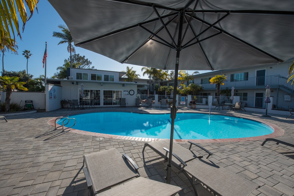 You are truly only steps away from an amazing beach where you can watch surfers, spot dolphins, swim, or just chill. Hike along the bluffs of the historical nature reserve or walk into town full of restaurants and shops. Perfect for that low-key, relaxing experience you've have been waiting for. The suite has been remodeled with a private entrance and patio for lounging. The interior includes a beautiful new bathroom, queen bed, frig , microwave, coffee maker, water dispenser, TV and internet