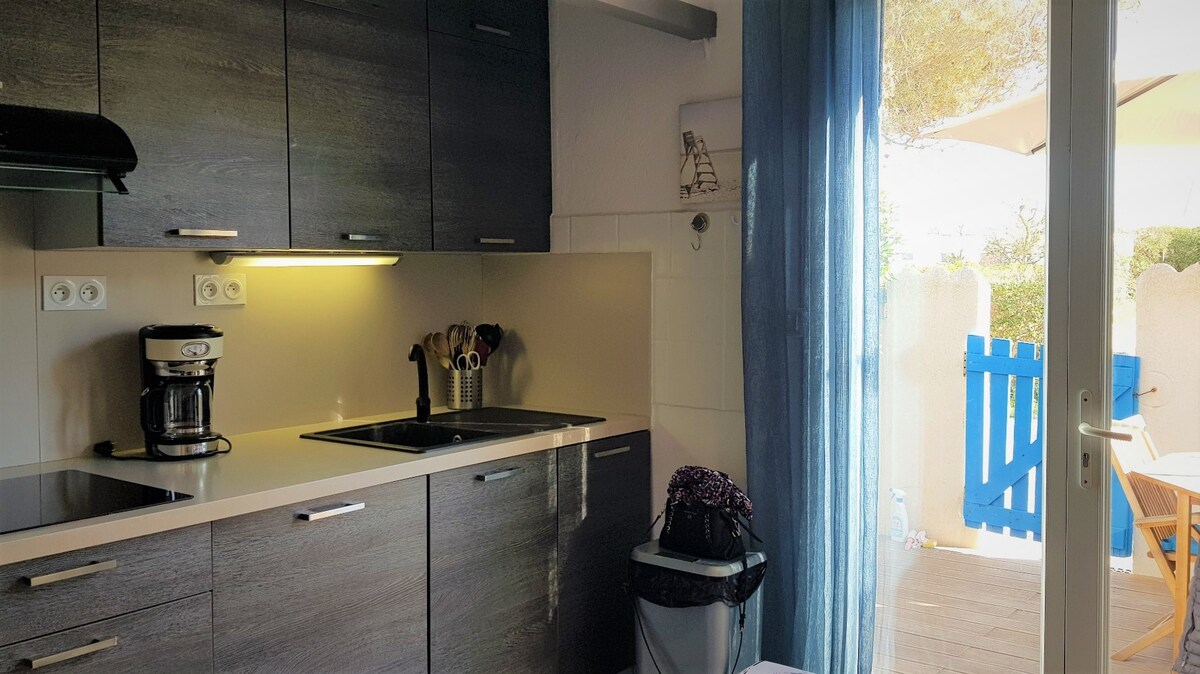 Dans une résidence calme et sécurisée, délassez-vous lors de vos repas à l'intérieur comme sur le balcon, tout en profitant d'une large vue sur la mer et les collines. Le studio ayant été refait à neuf, vous y trouverez tout ce qui est nécessaire à votre confort. De la climatisation pour les journées chaudes, à la cloison amovible de la chambre duo. Rafraîchissez-vous dans un bain de mer, les pieds dans le sable, de l'autre côté de la rue ou un verre a la main en bas de la résidence. Bon séjour