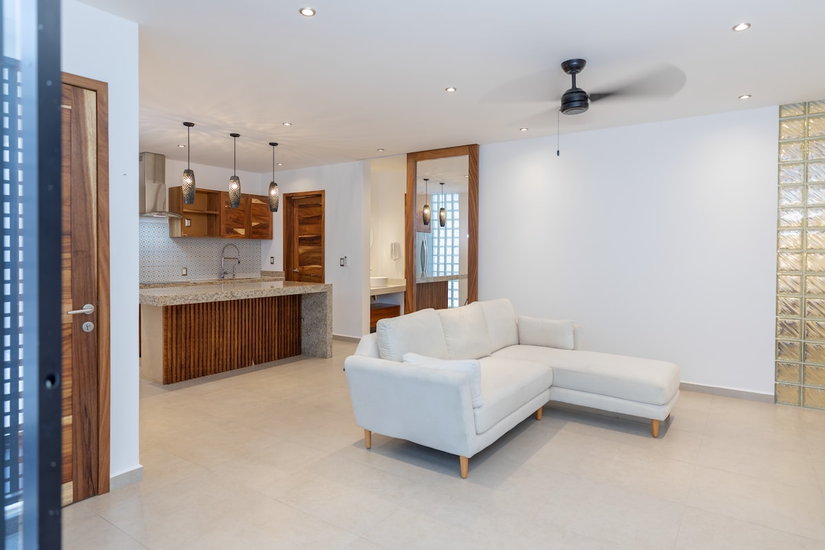 🌊 Čudovito stanovanje v velikosti 100 m² s pogledom na zasebno plažo. Sprostite se v tem na novo prenovljenem stanovanju, ki se nahaja v hotelu Camino Real Zaashila en Huatulco. ✨Kapaciteta za 3 osebe. Dostop do vseh hotelskih ugodnosti 🎾 🏋️ 🏊 ☕️ 🍹 🥘 📍Nahaja se na hribu, zato so na voljo stopnice in poti, obdane z naravo, po katerih se lahko sprehajate in uživate v pokrajini. 🚘 Prenočišče nima dvigal, vendar lahko zaprosite za voziček za golf, ki vam bo pomagal pri prihodu in odhodu.