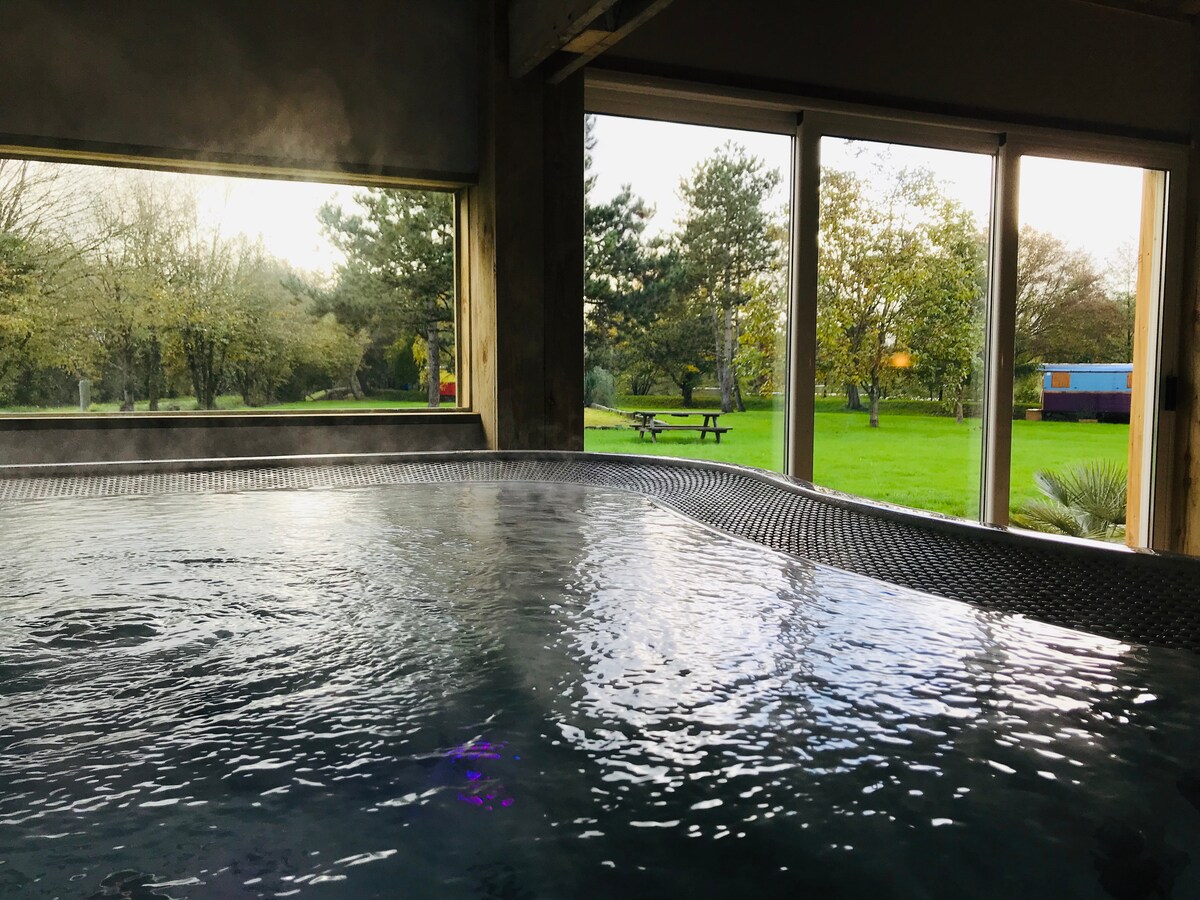 Romantična hiška na deželi s 5 zvezdicami v bližini plaže Guittière. Za prijetno bivanje. Popolnoma opremljena kokoning hiša z balneoterapijo in svetlobno terapijo ter se prepustite razvajanju v zelenem okolju v osrčju podeželja! Uživajte v trenutku sprostitve, možnosti duo masaž, v zaprtih prostorih ali na vrtu s pticami! Za vaše udobje in bivanje v tem mehurčku dobrega počutja vam lahko kuharski mojster Romuald Chevalier pripravi gurmanski obrok!