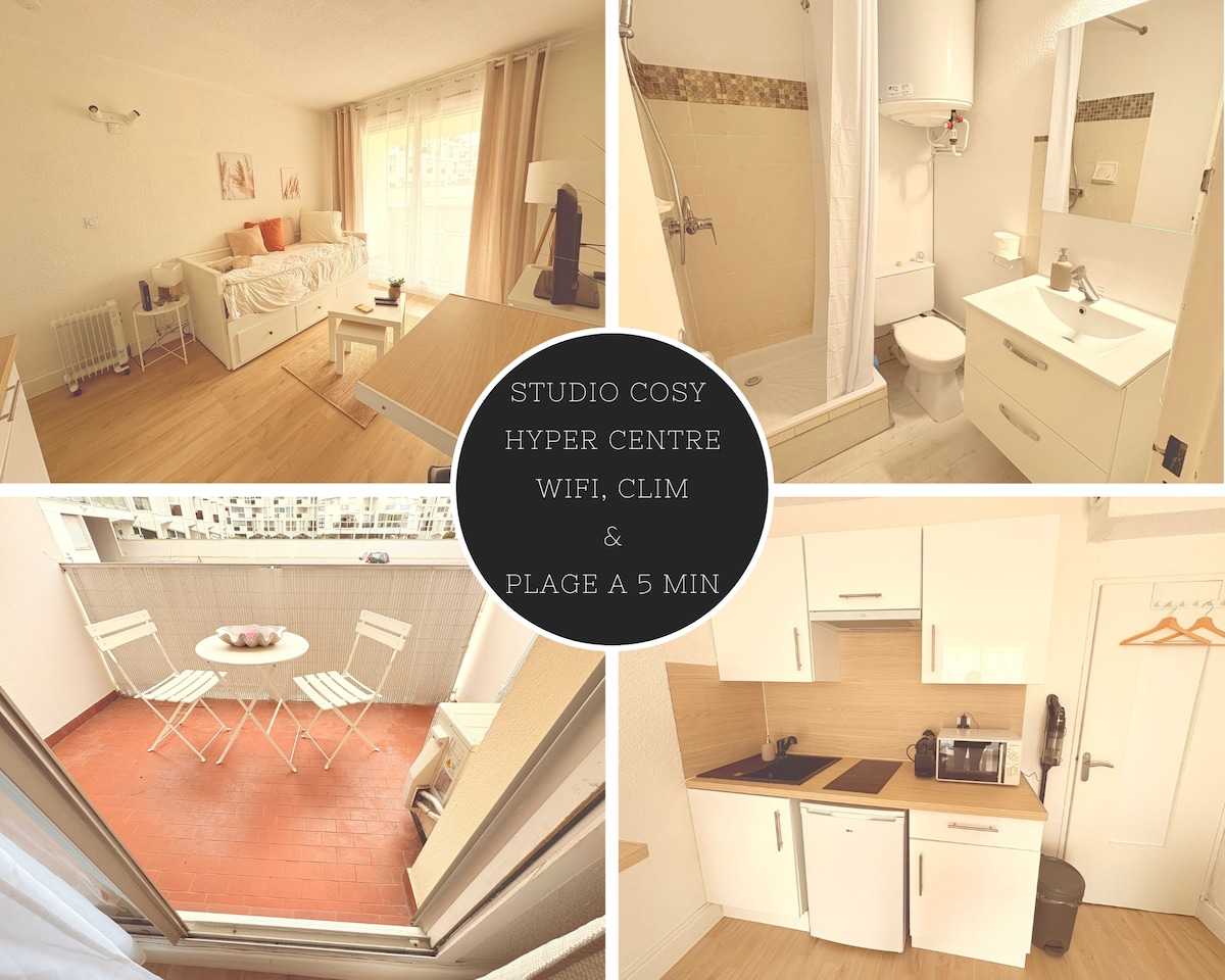 ⛱ Udobno studio, popolnoma prenovljeno v zelo mirni in prijetni rezidenci ⛱ ▸ 3 min od plaže s pogledom na morje z balkona ▸ Zasebno, ograjeno in varno parkirišče: možnost parkiranja 2 avtomobilov ▸ Popolnoma opremljeno: Wi-Fi, klimatska naprava, TV, pralni stroj ▸ Na voljo je posteljnina: rjuhe, brisače, odeje ▸ V bližini trgovin in restavracij (Lidl, Super U, pekarna, trgovina s tobakom itd.) ▸ Prilagodljiv čas odhoda ▸ Idealno za 3 osebe (2 odrasla in 1 otrok)